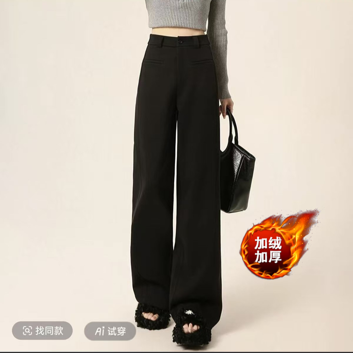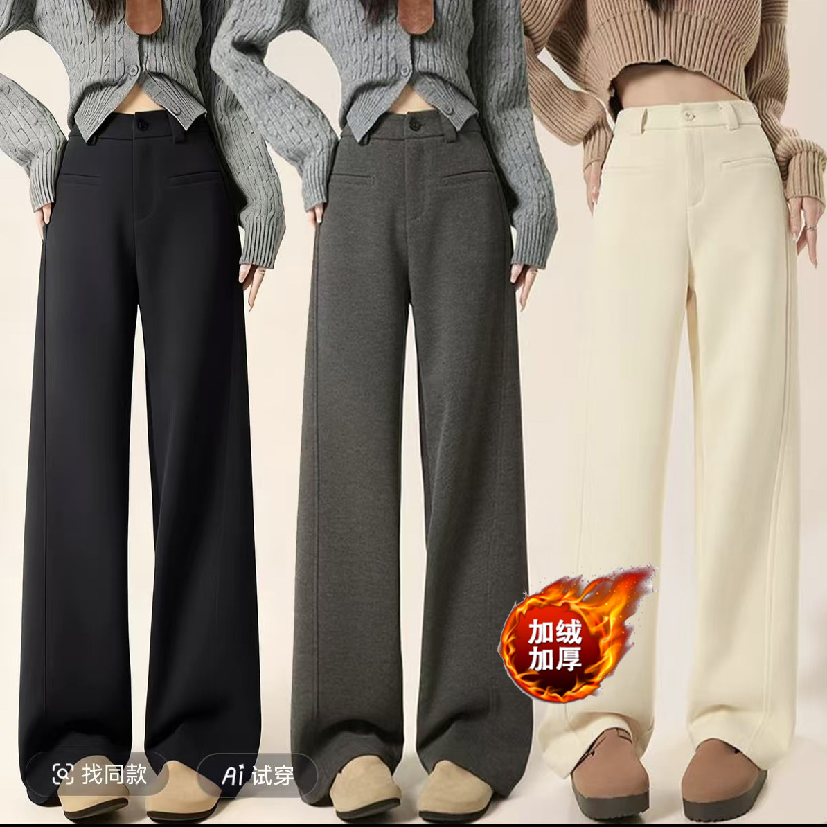 万人好评~【加绒毛呢】窄版阔腿裤秋冬加绒加厚高腰显瘦直筒裤