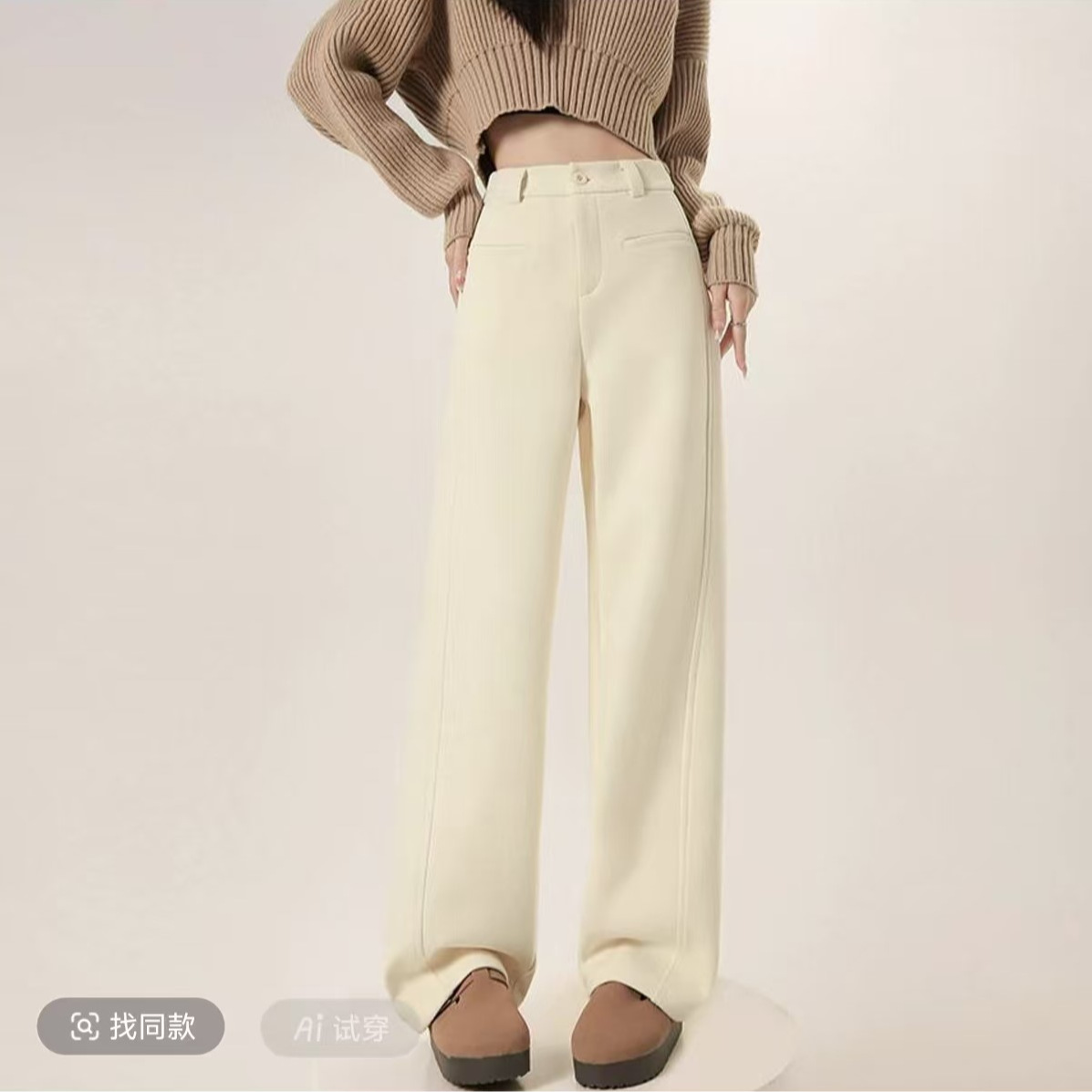 关键词:毛呢,直筒裤