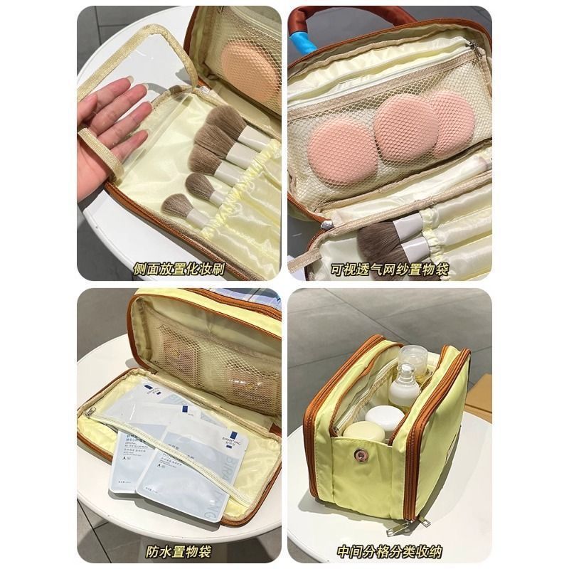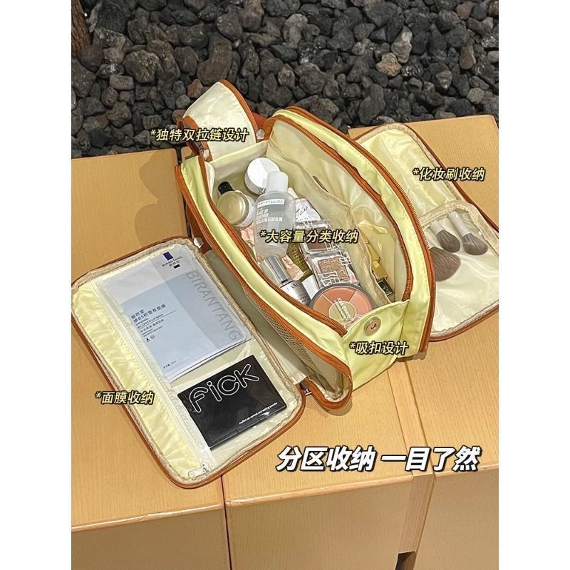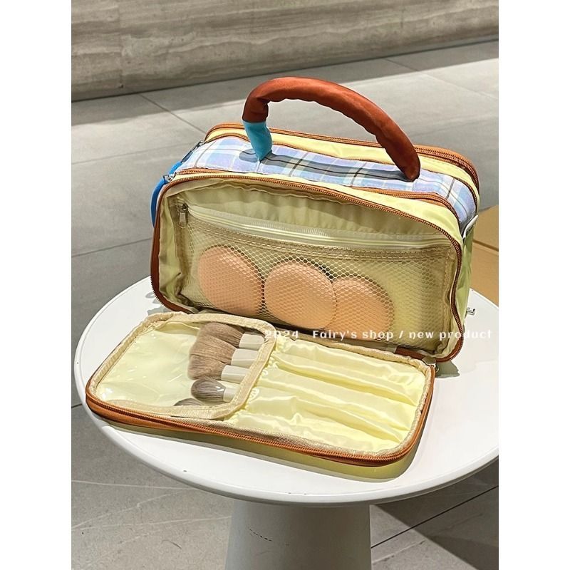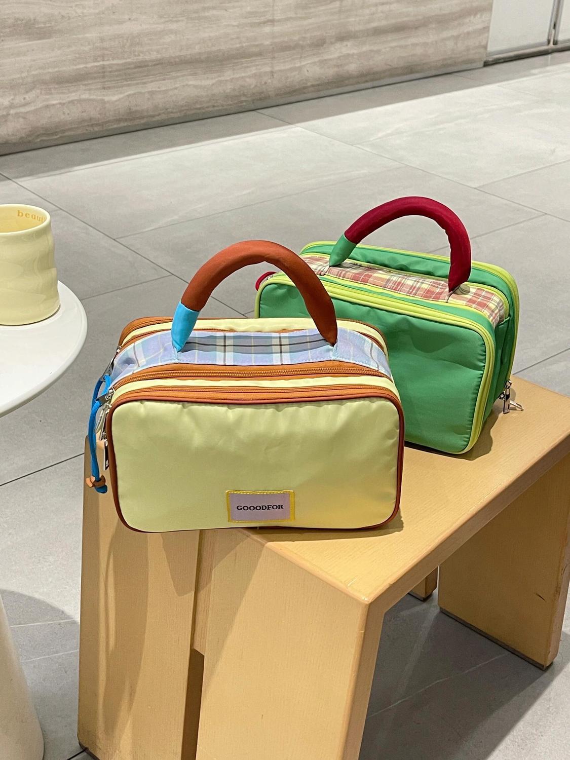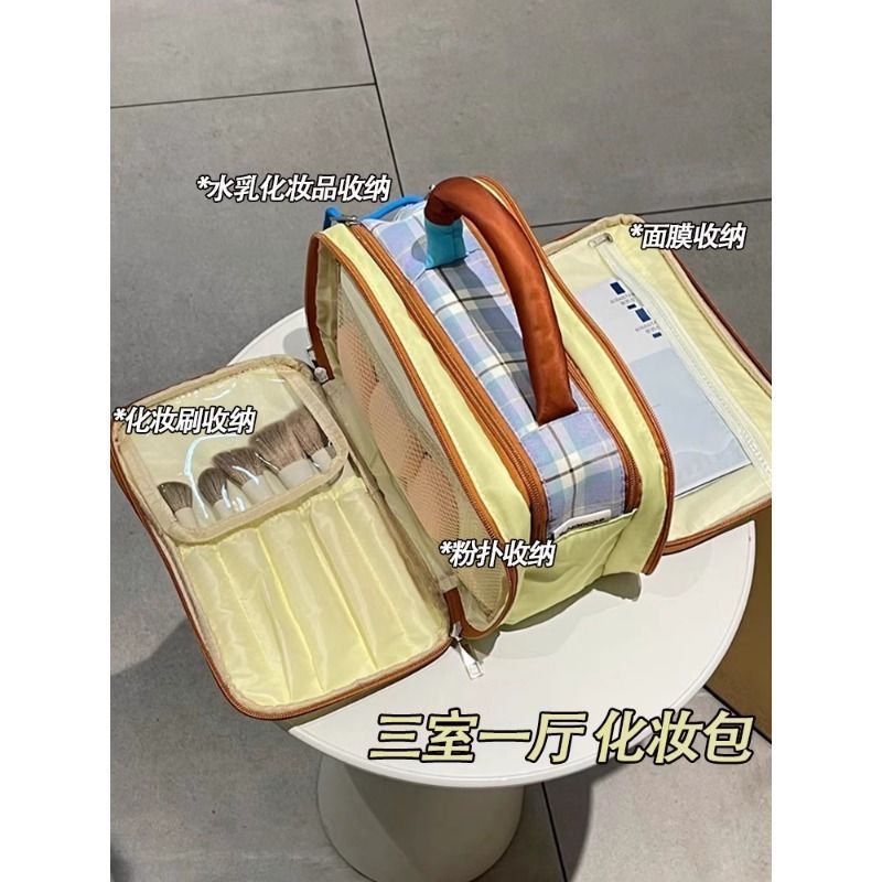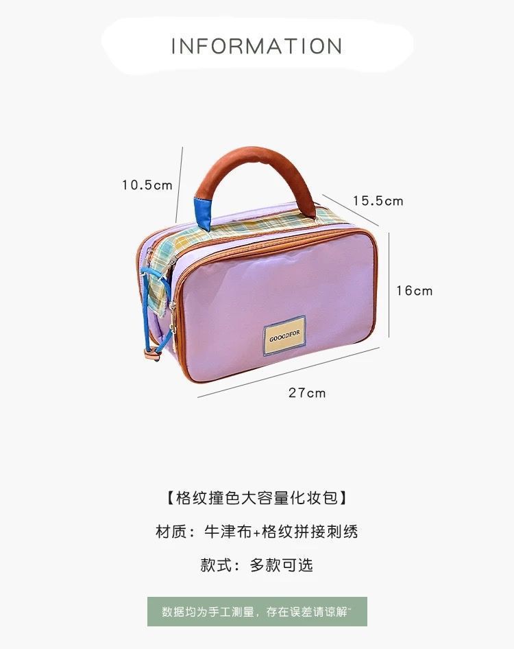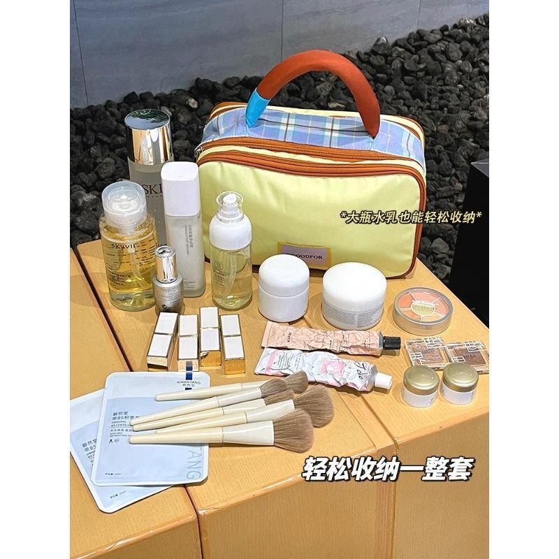 格纹撞色大容量储物化妆包新款便携式手提旅行洗漱收纳袋翔斐