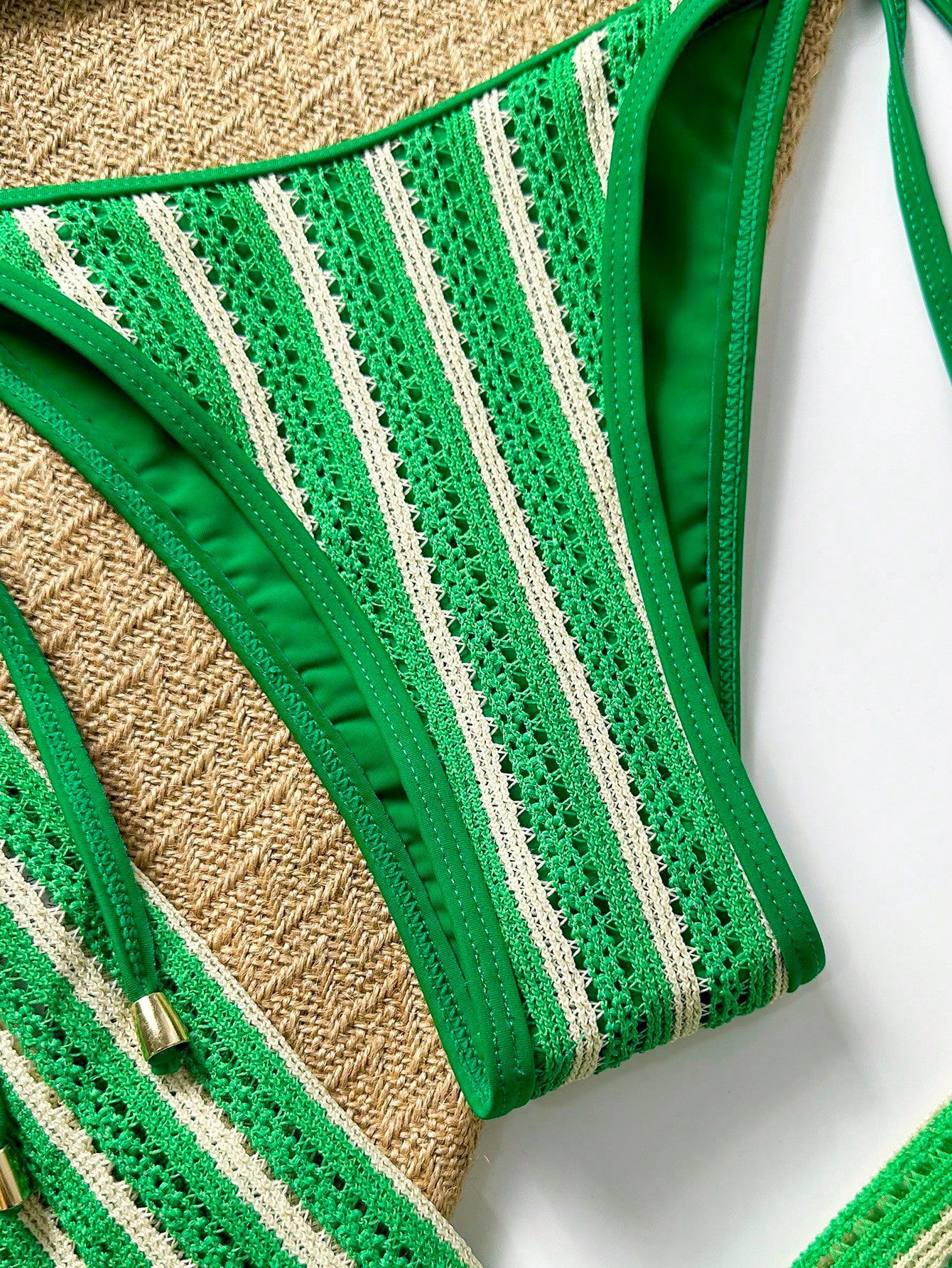 外贸比基尼女分体长裤泳衣三件套速卖通欧美爆款性感条纹印花泳衣