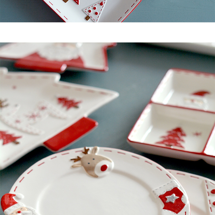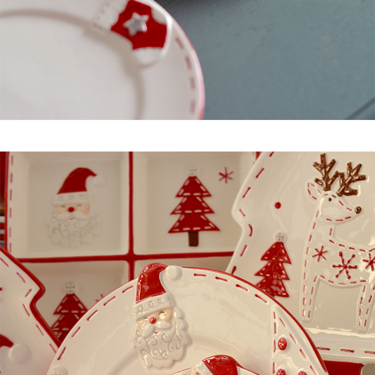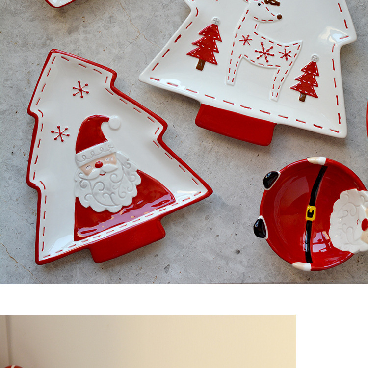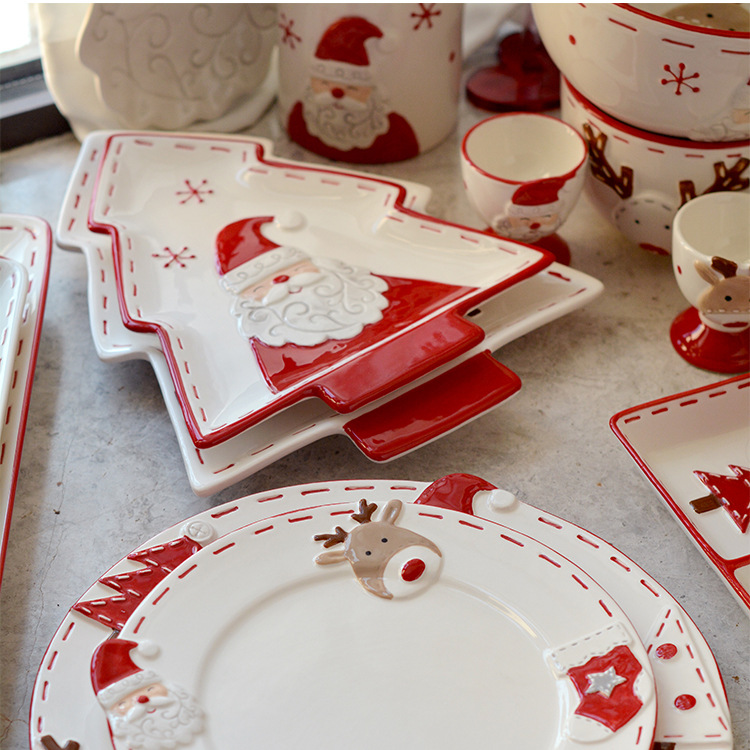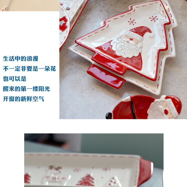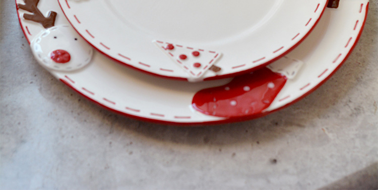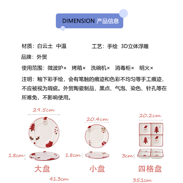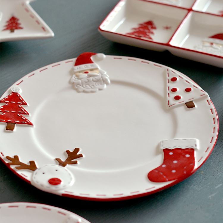2024新款圣诞手绘陶瓷餐具套装可爱圣诞牛排盘浮雕釉下彩平盘鱼盘