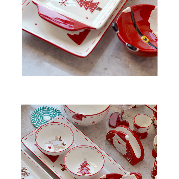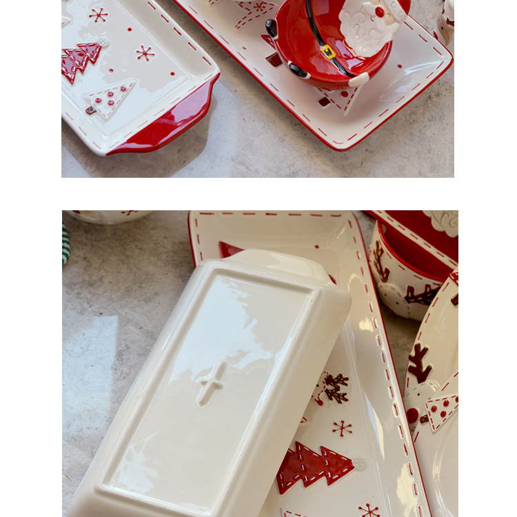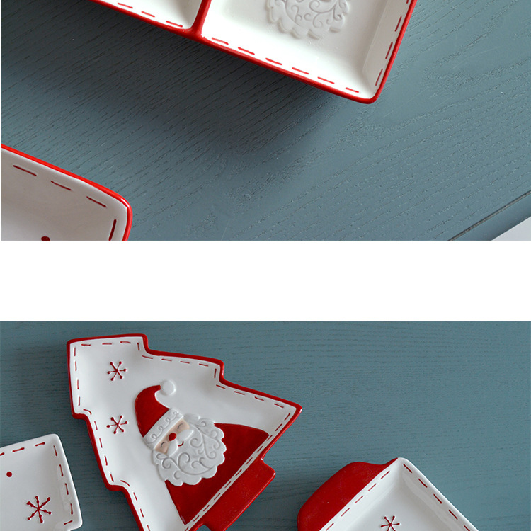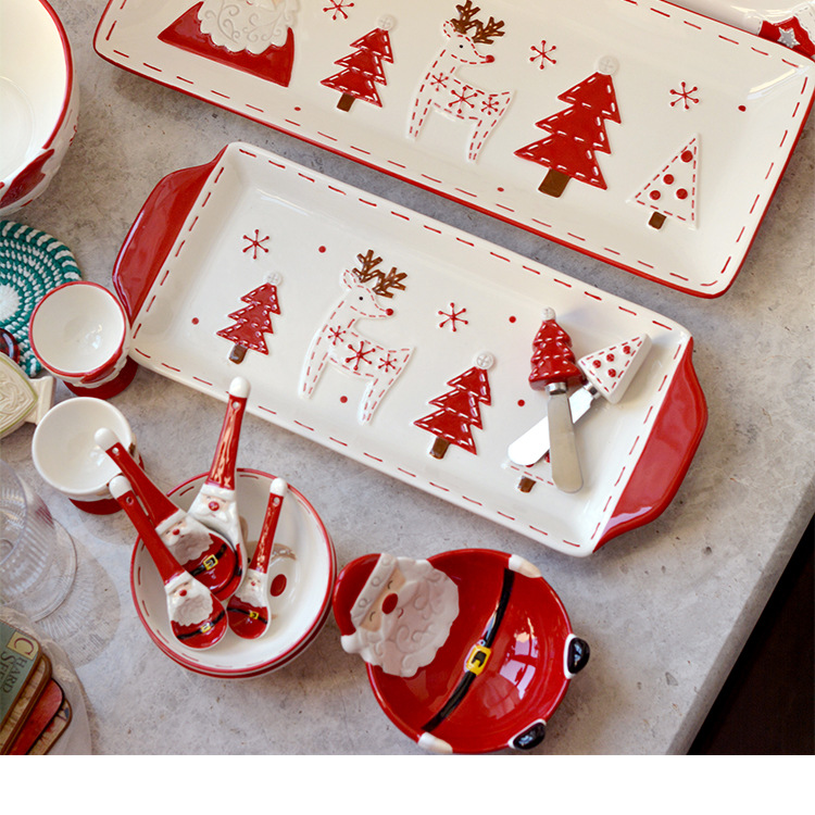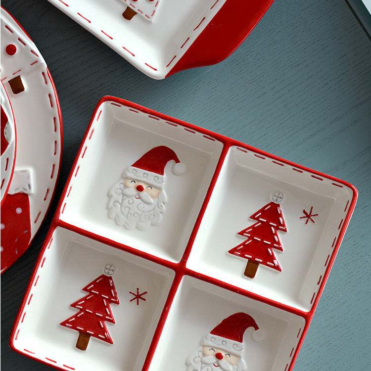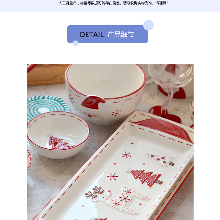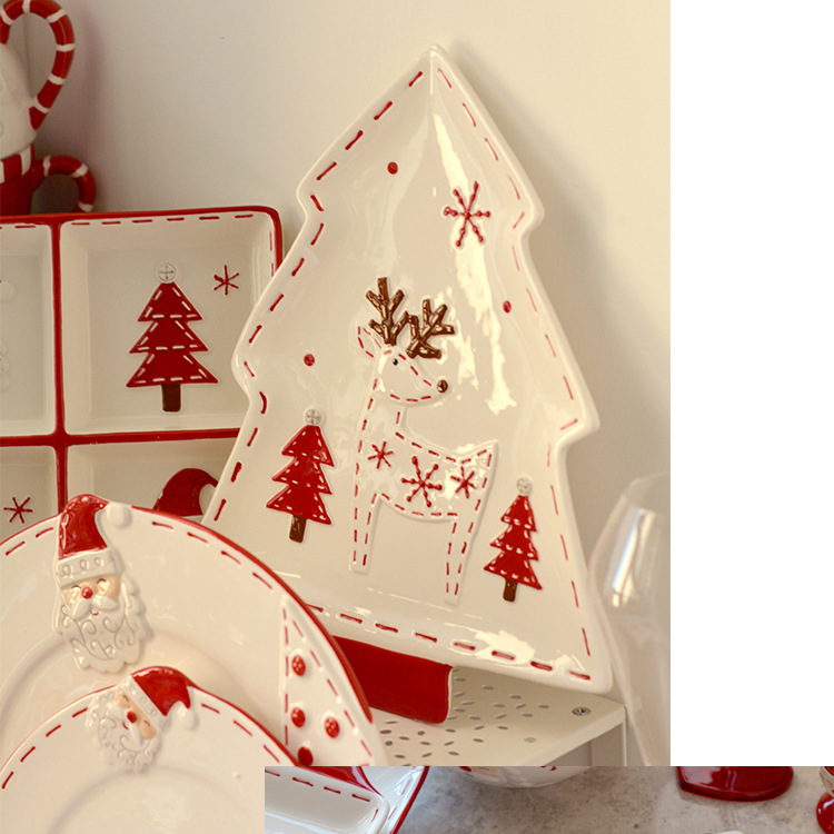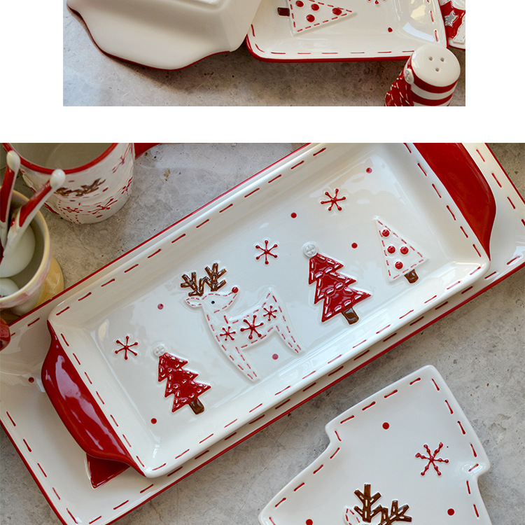 2024新款圣诞手绘陶瓷餐具套装可爱圣诞牛排盘浮雕釉下彩平盘鱼盘