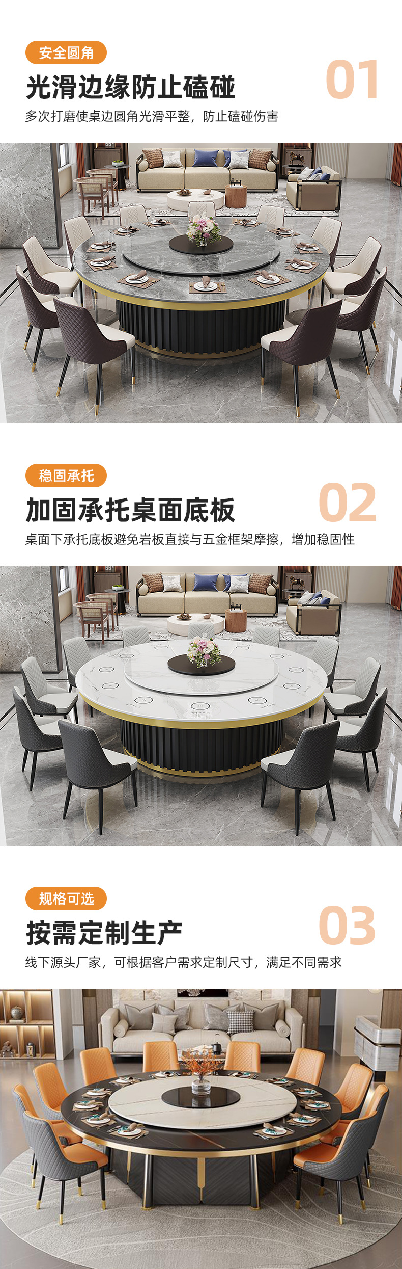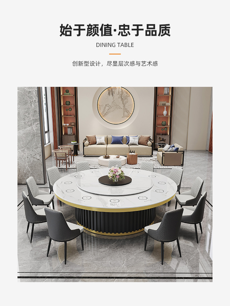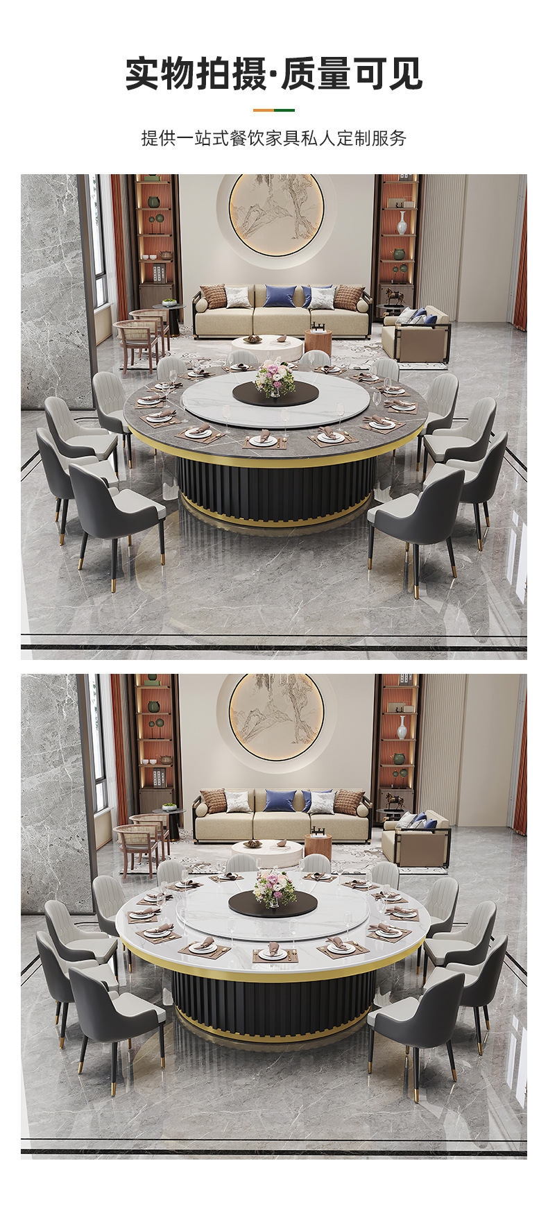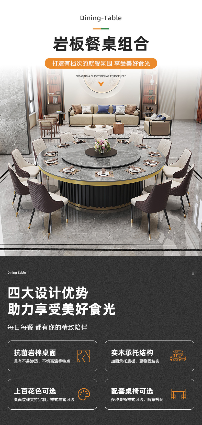 岩板桌椅组合现代简约轻奢酒店电动旋转餐桌大圆桌带转盘火锅圆桌