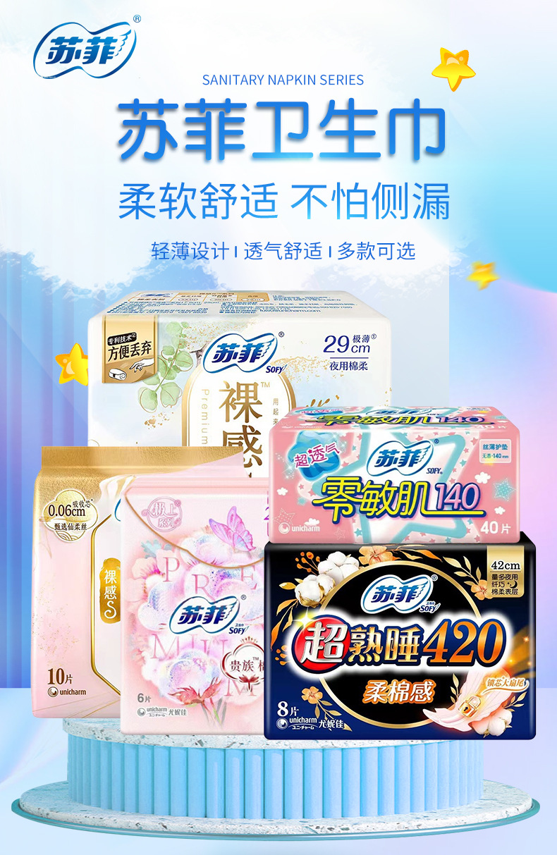 苏菲卫生巾护垫日用夜用弹力贴身姨妈巾超熟睡安心安睡裤整箱批发