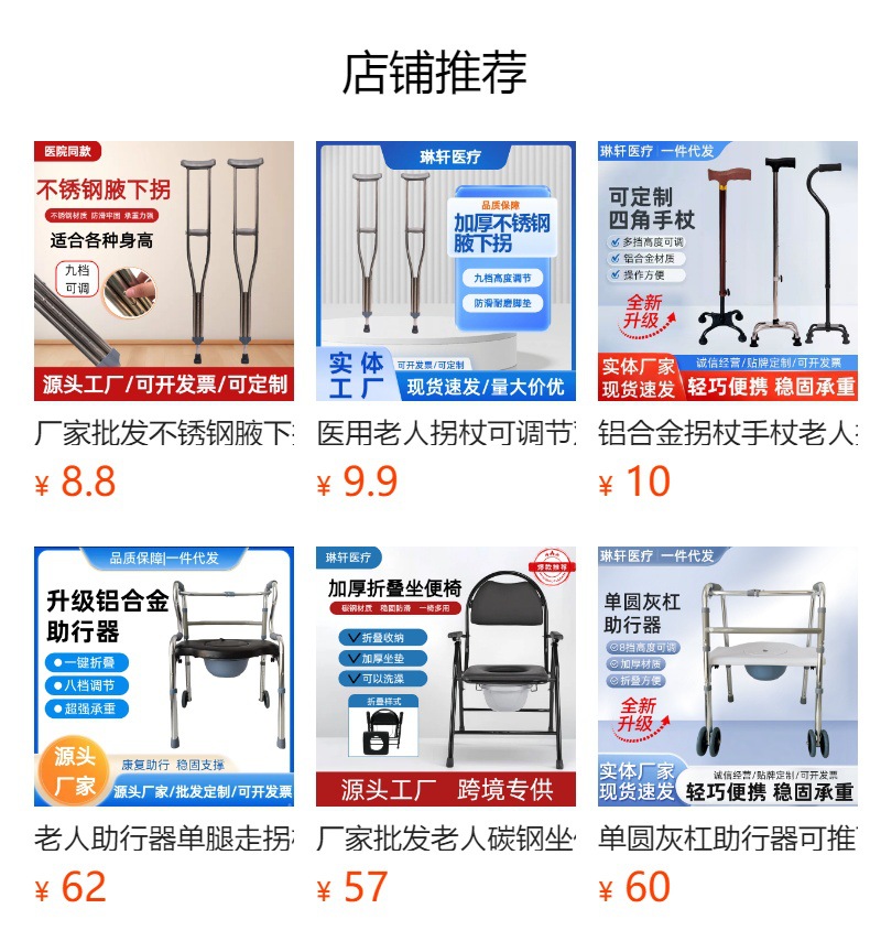 [ 商业 ] 工厂批发加厚双拐单脚拐杖不锈钢腋下拐户外防滑手杖伸缩可调节