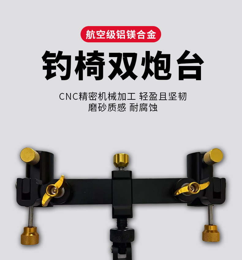 厂家跨境钓箱双炮台支架万向铝合金双头架万向架钓箱双炮台支架