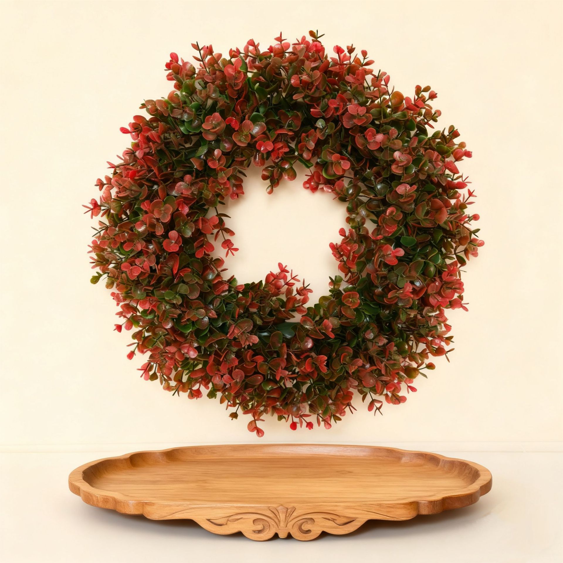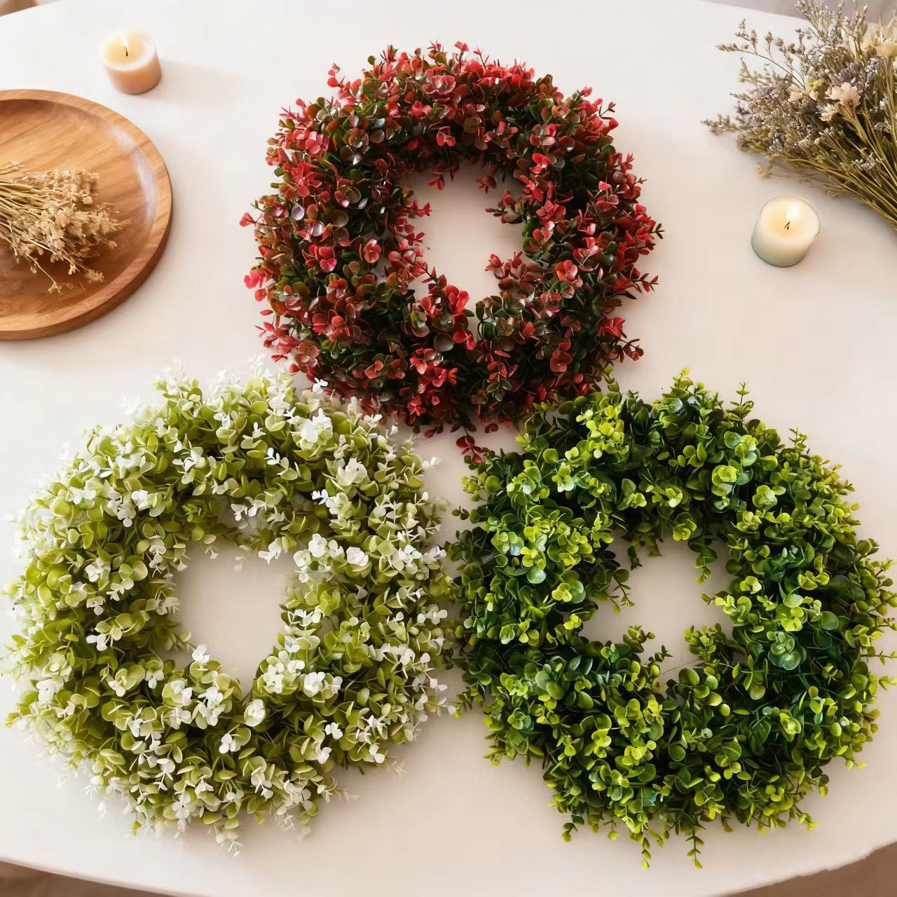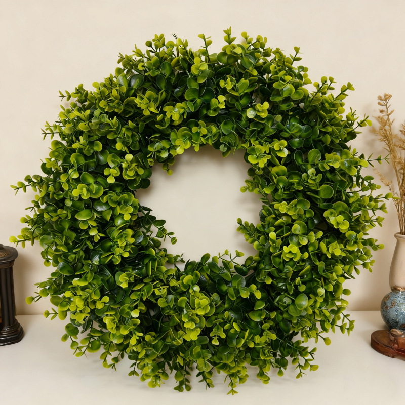 亚马逊仿真绿植浆果花环尤加利藤圈仿真水草叶装饰门挂件跨境代发