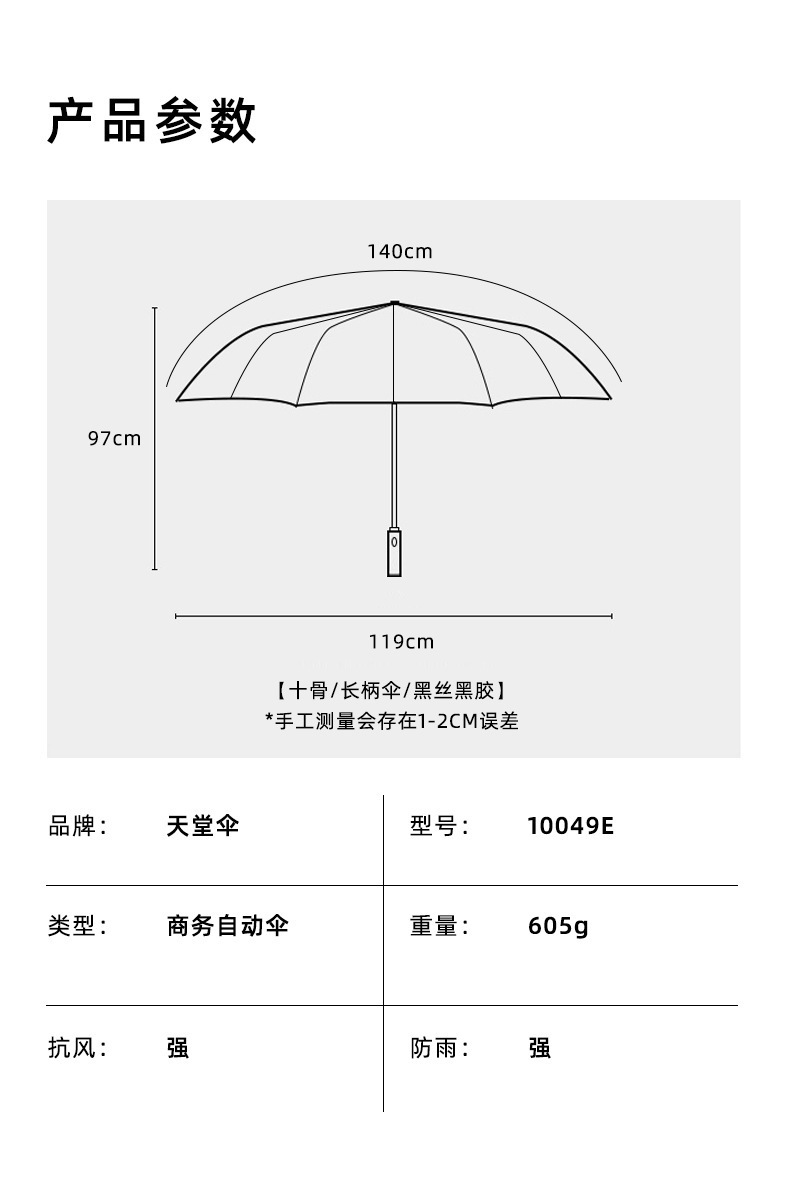 天堂伞10049E十骨自动商务长柄伞加大伞面高尔夫伞广告伞可印LOGO