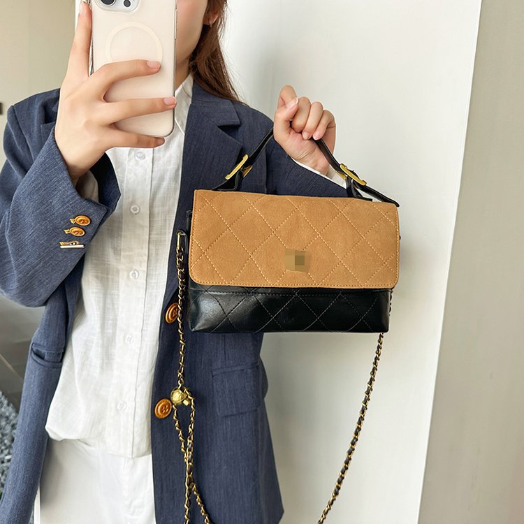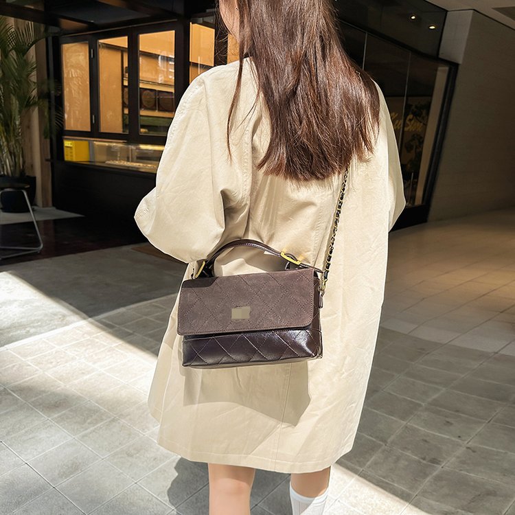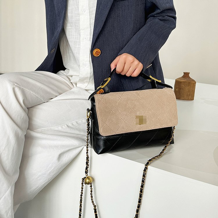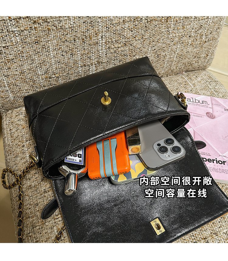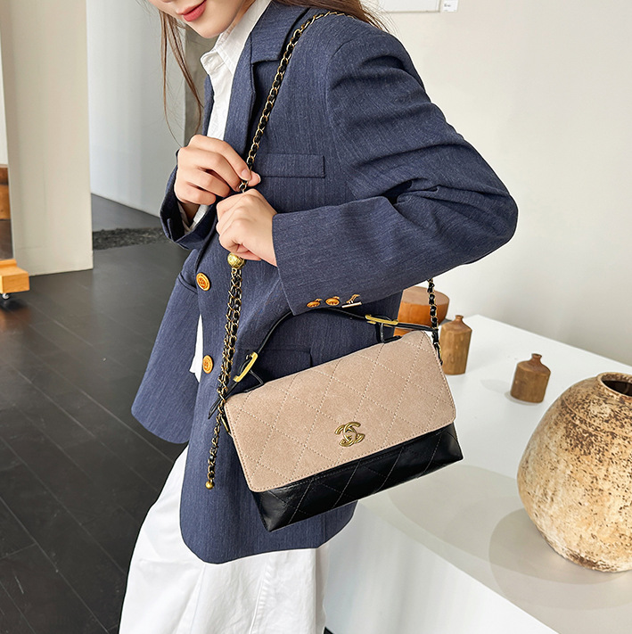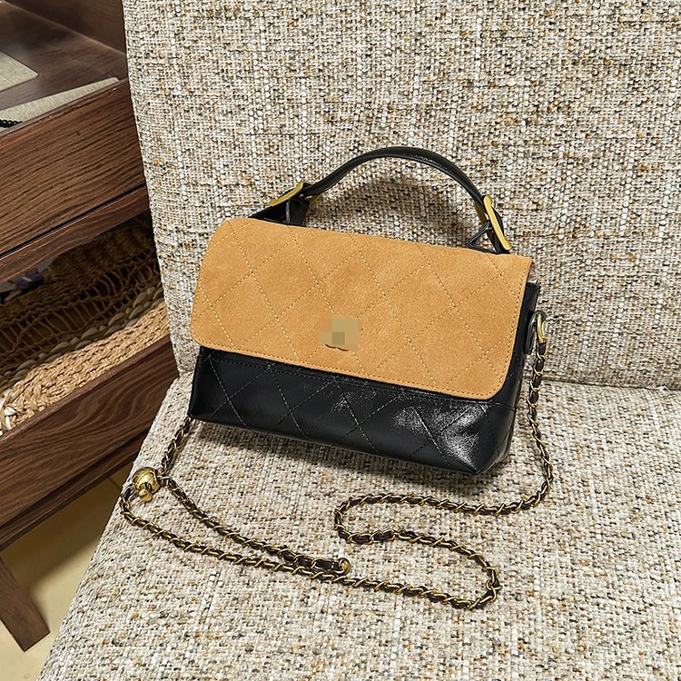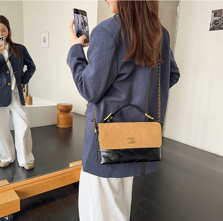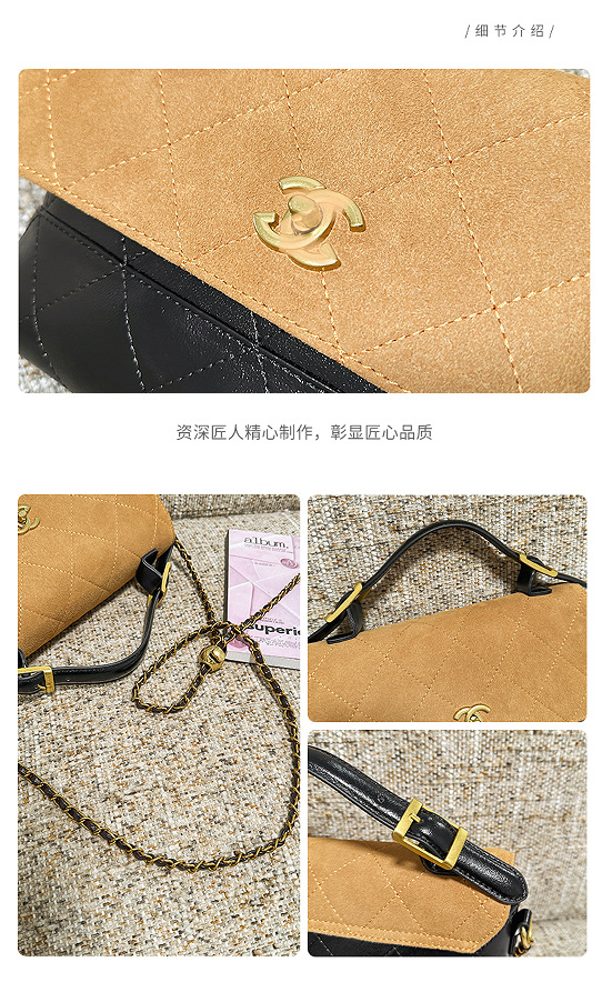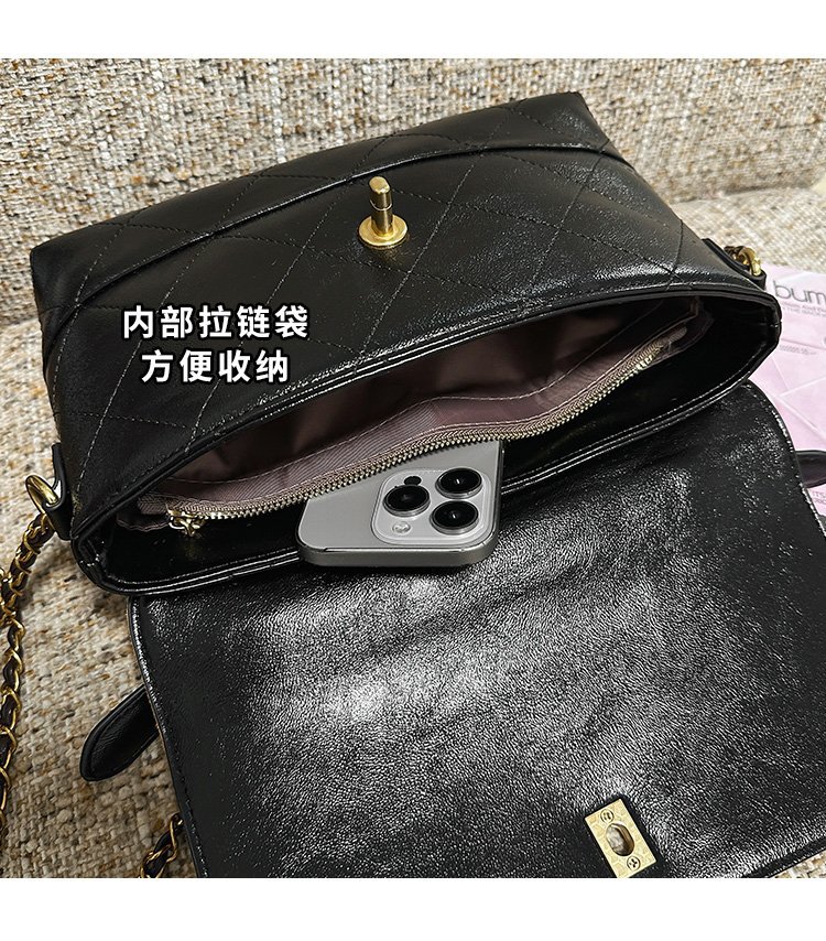 小香风轻奢锁扣小方包菱格绣线拼接翻盖手提包通勤时尚单肩斜挎包