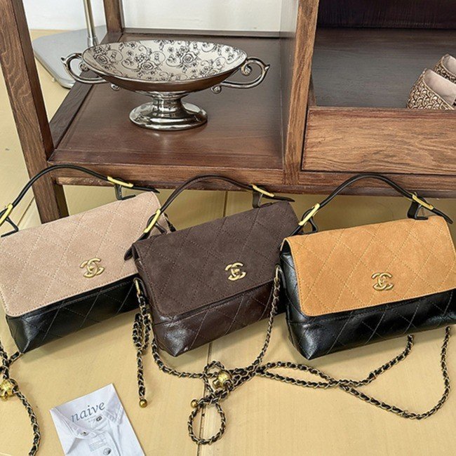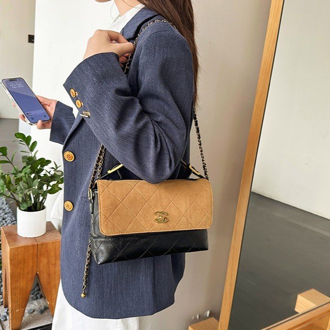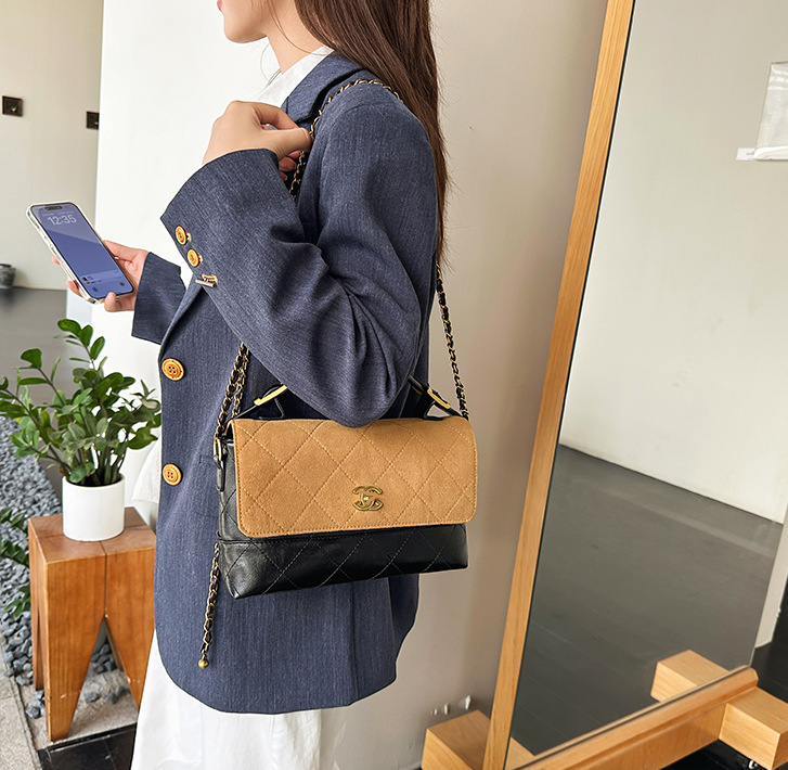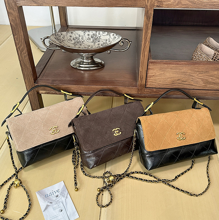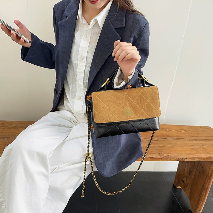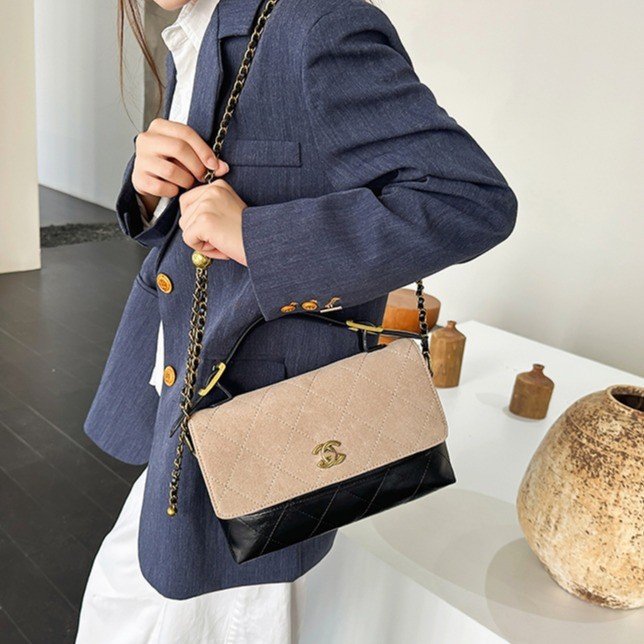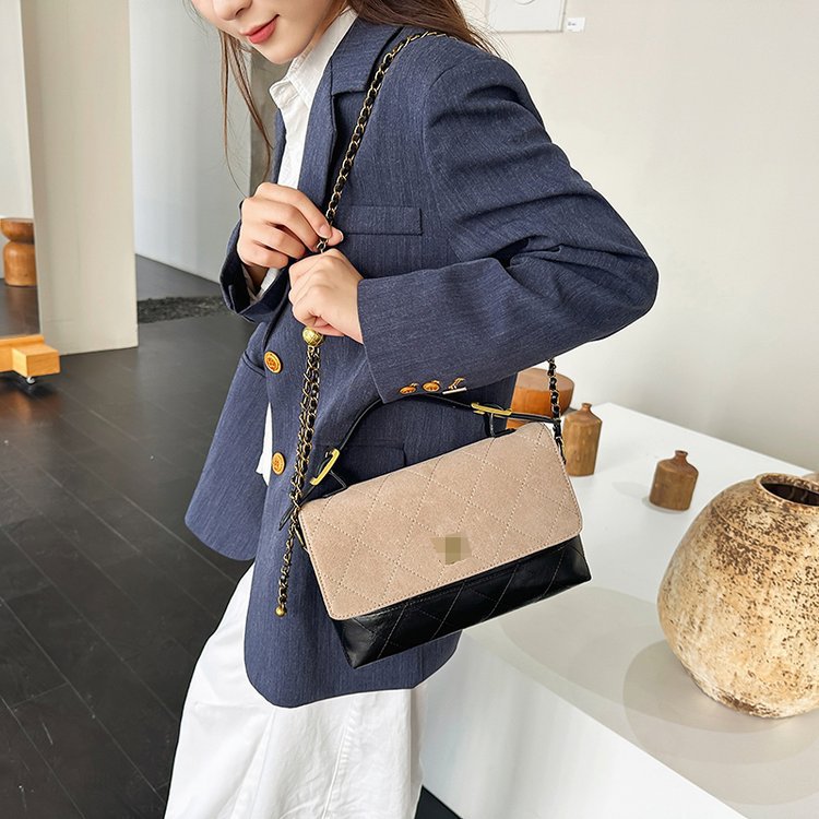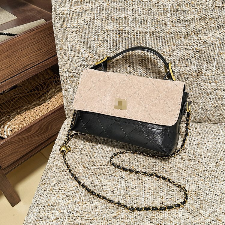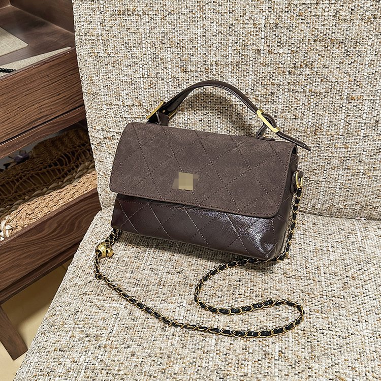 小香风轻奢锁扣小方包菱格绣线拼接翻盖手提包通勤时尚单肩斜挎包