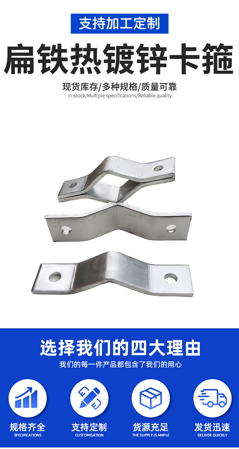 厂家定制扁铁热镀锌卡箍抱箍架电力支架工具配件单吊电缆固定卡箍