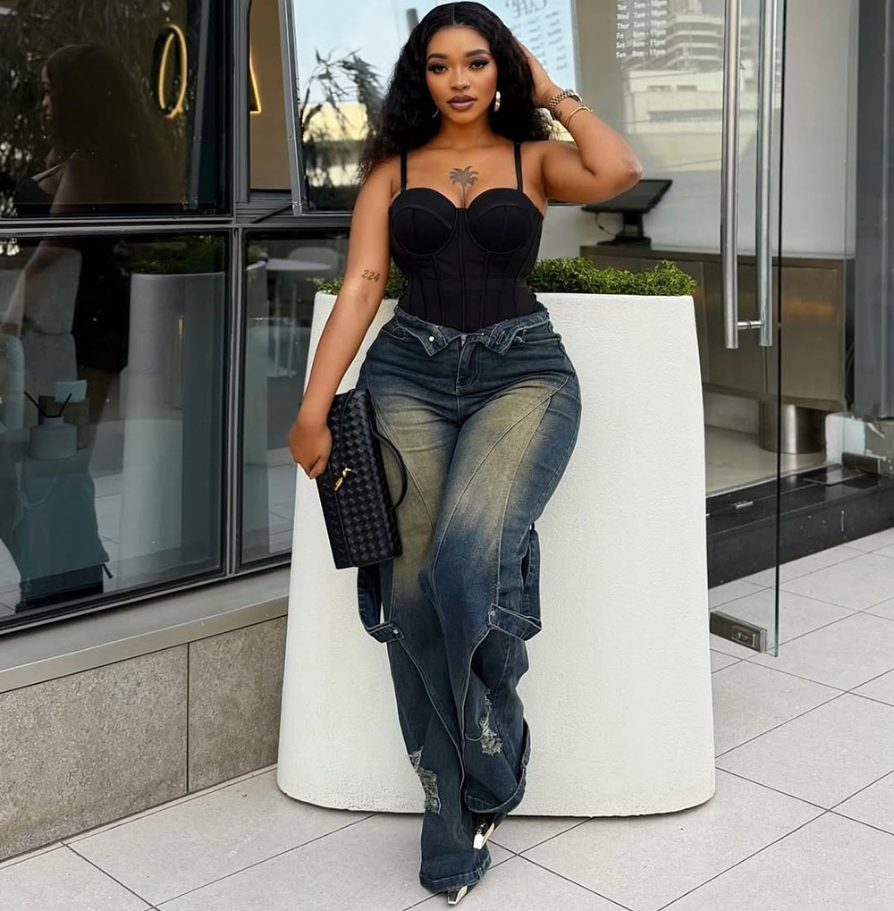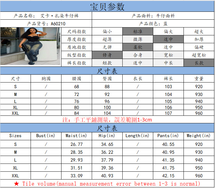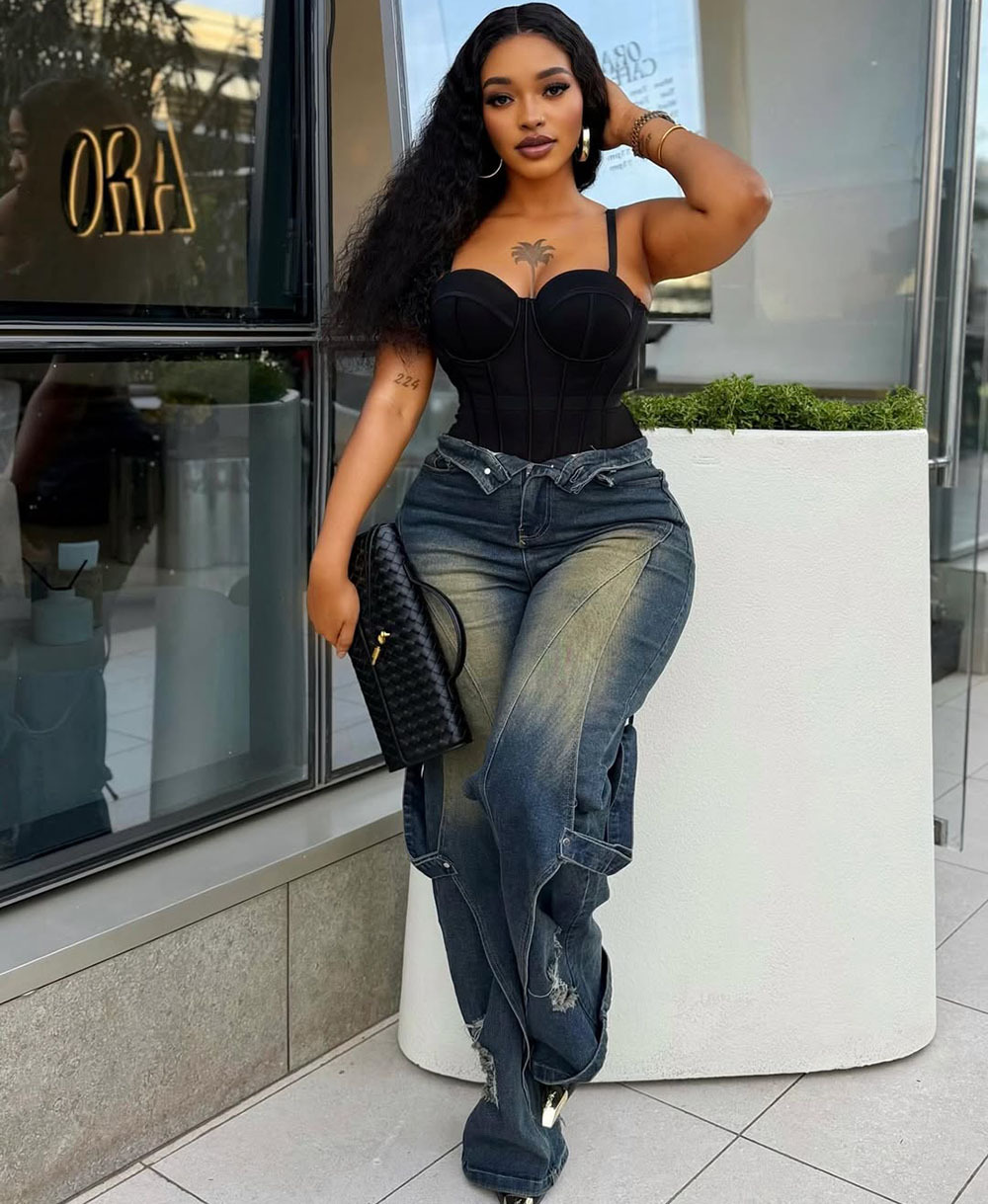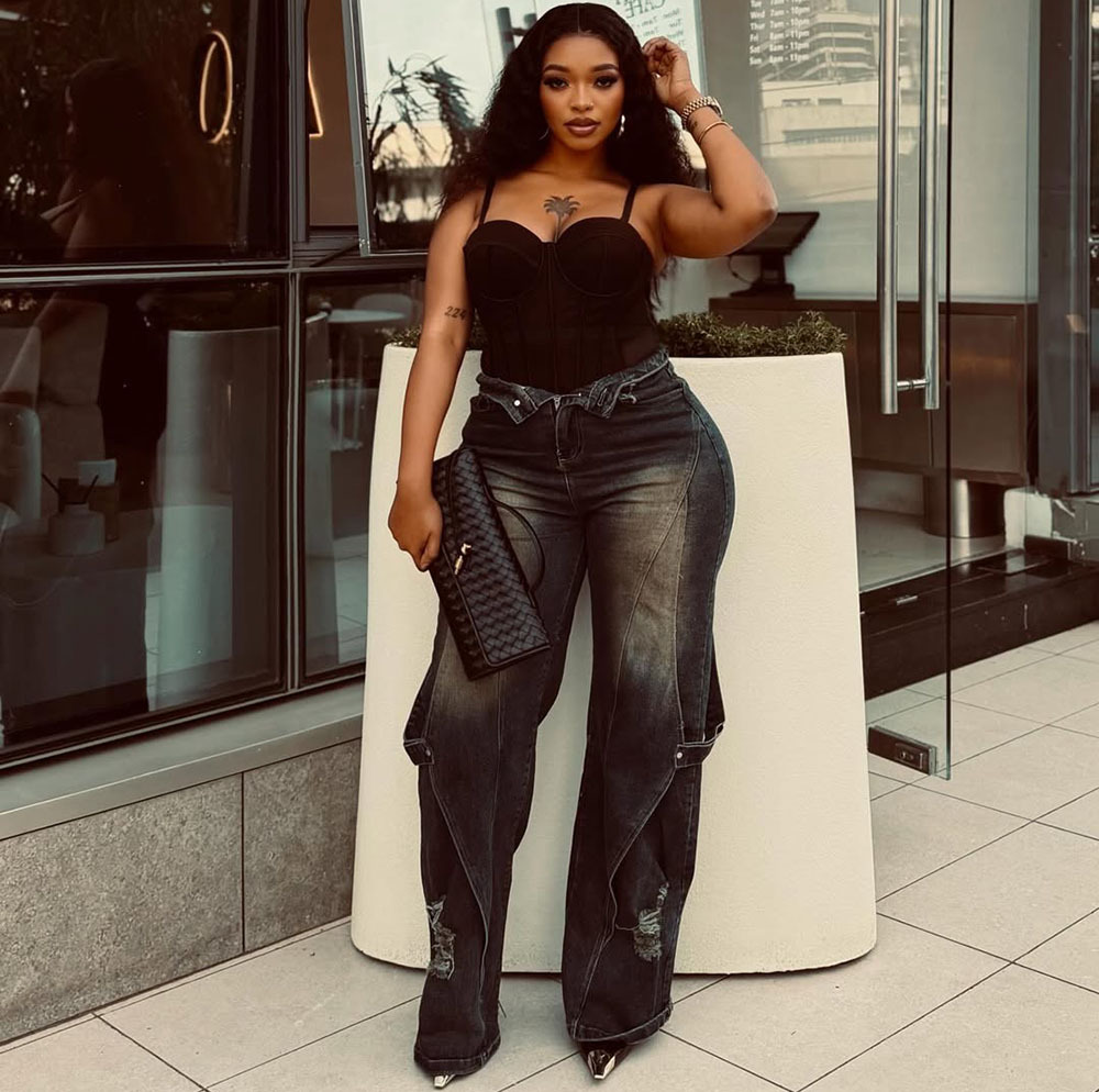 欧美女式阔腿牛仔裤 亚马逊跨境女装时尚水洗扎染磨破直筒工装裤