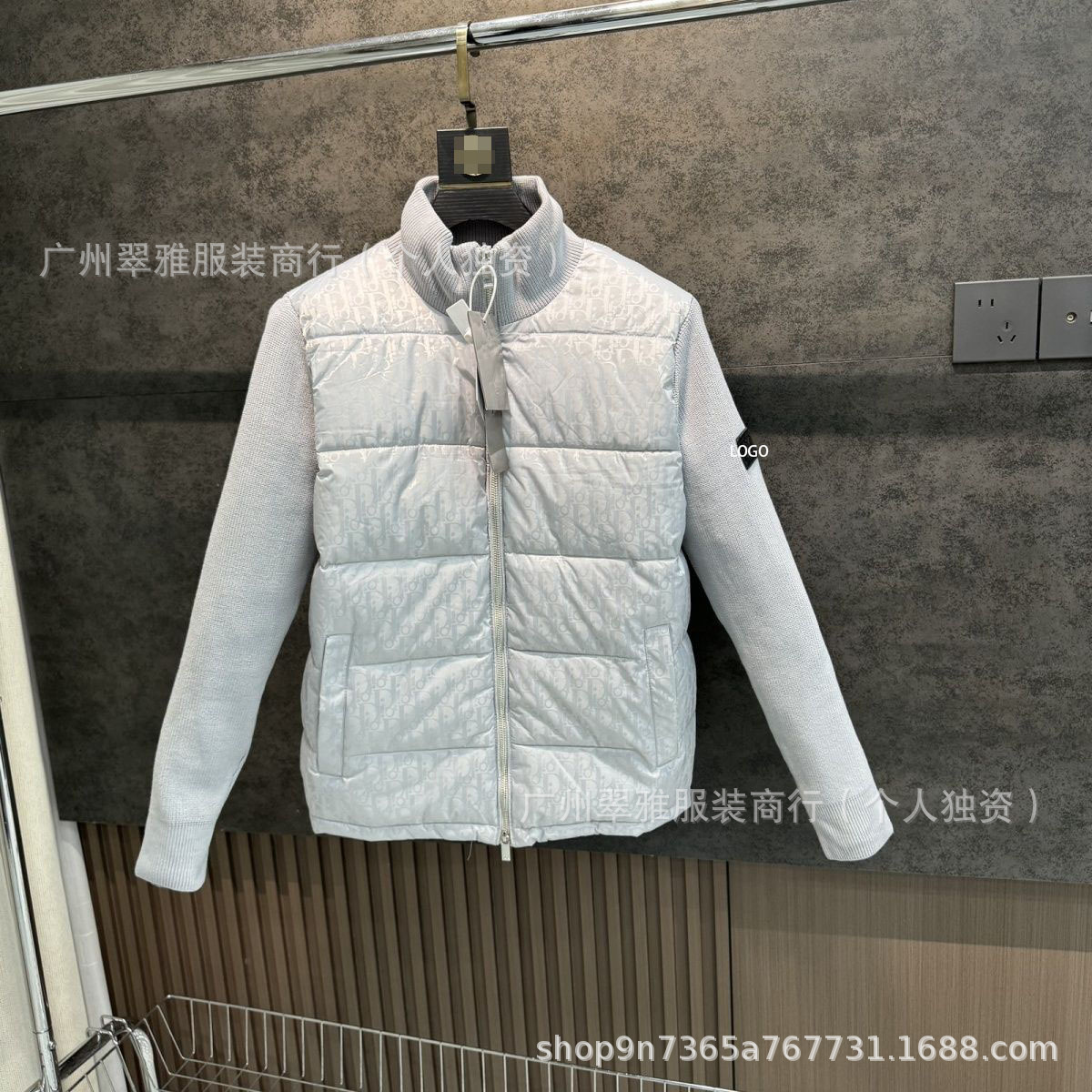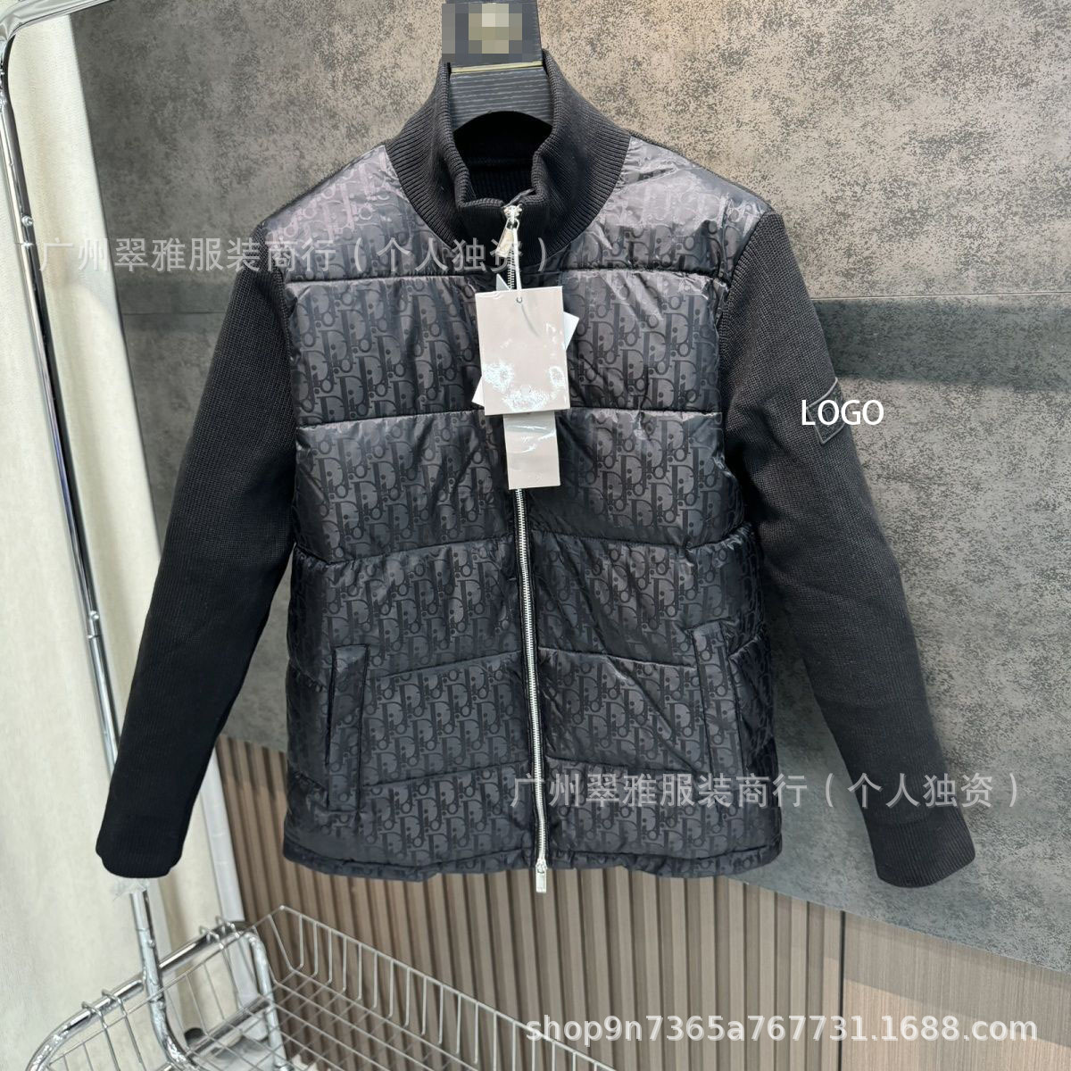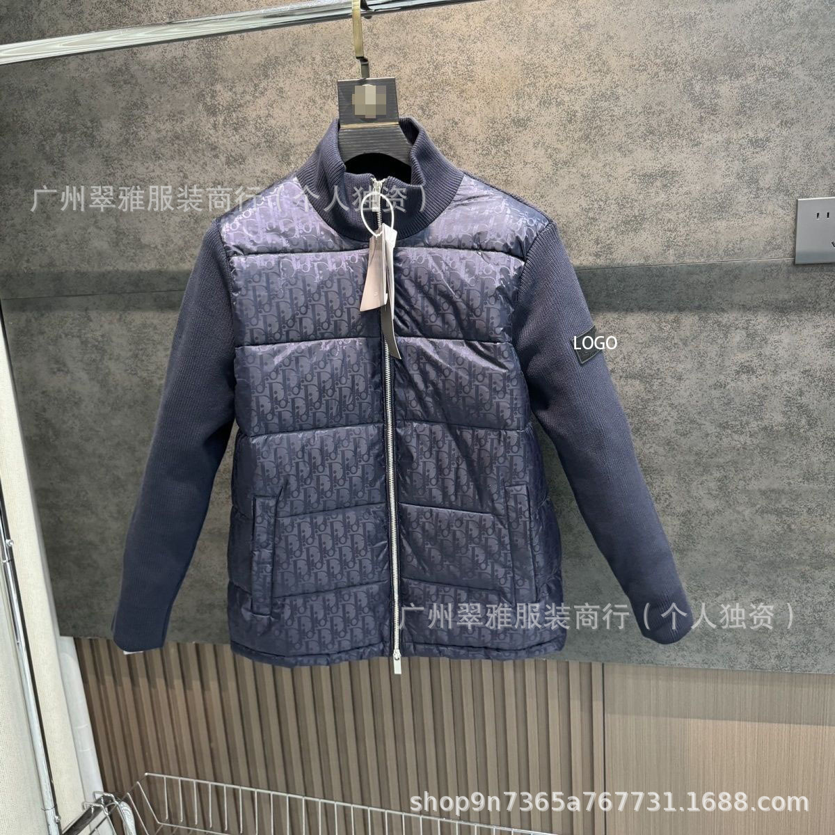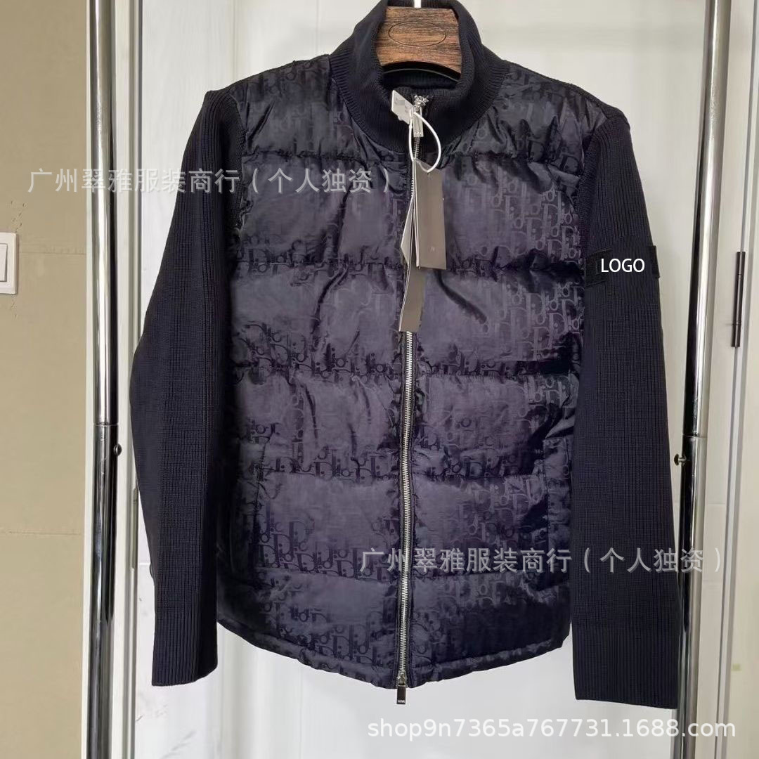 D家外贸爆款针织拼接棉服男女情侣同款满印立领修身保暖休闲外套