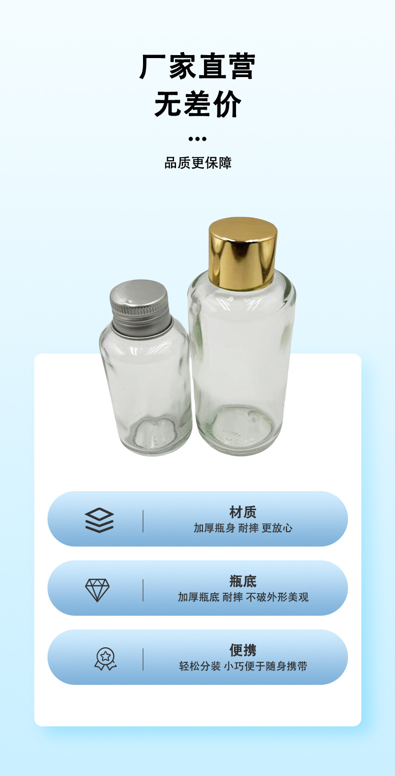 50ml100ml煤气精油精华液瓶厚底精油瓶原液透明玻璃瓶爆款分装