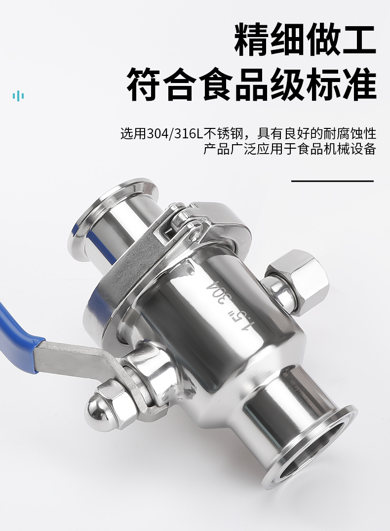 304不锈钢无滞留液球阀卫生级卡箍式快装球阀可拆卸无积水可清洗