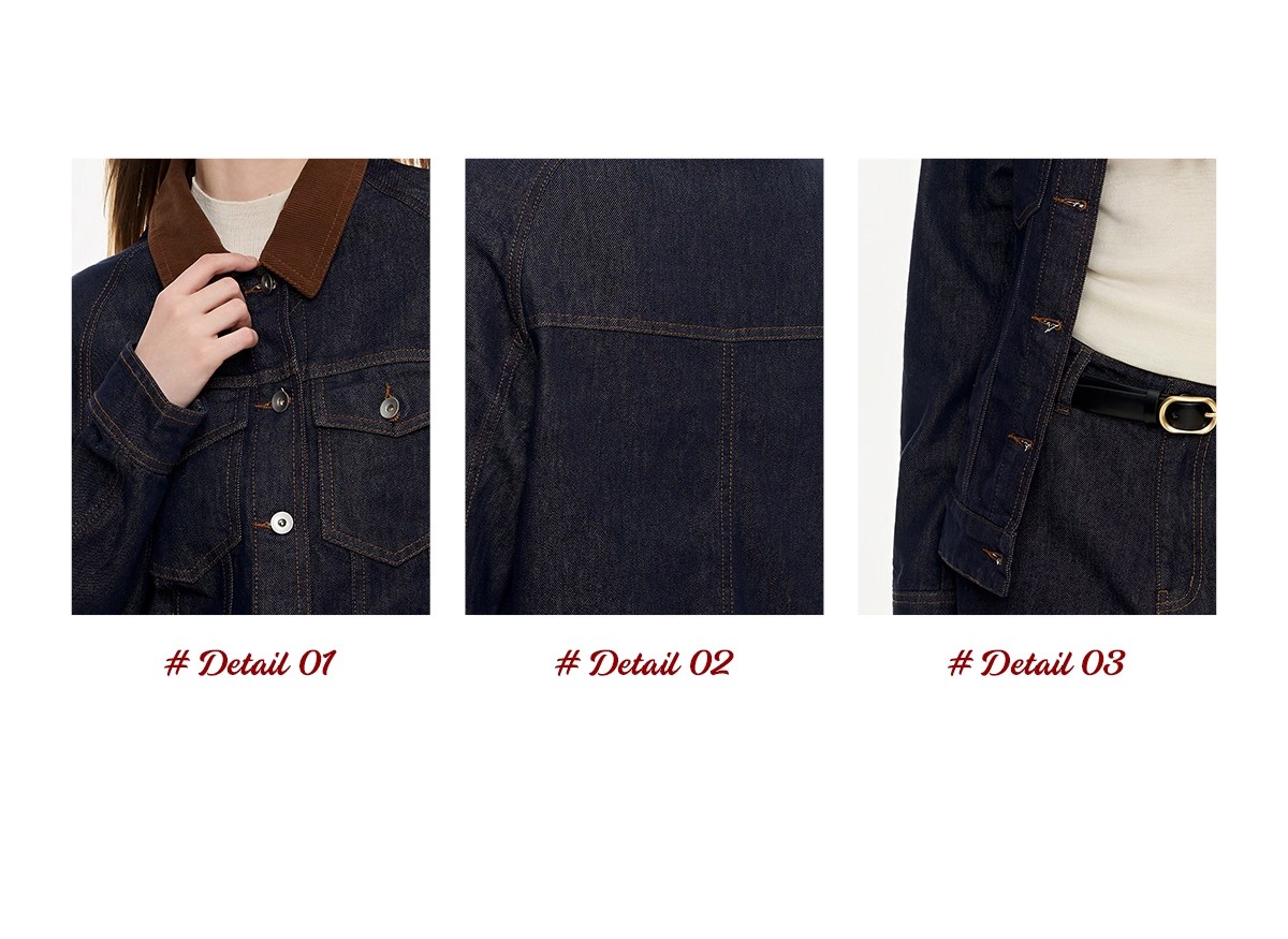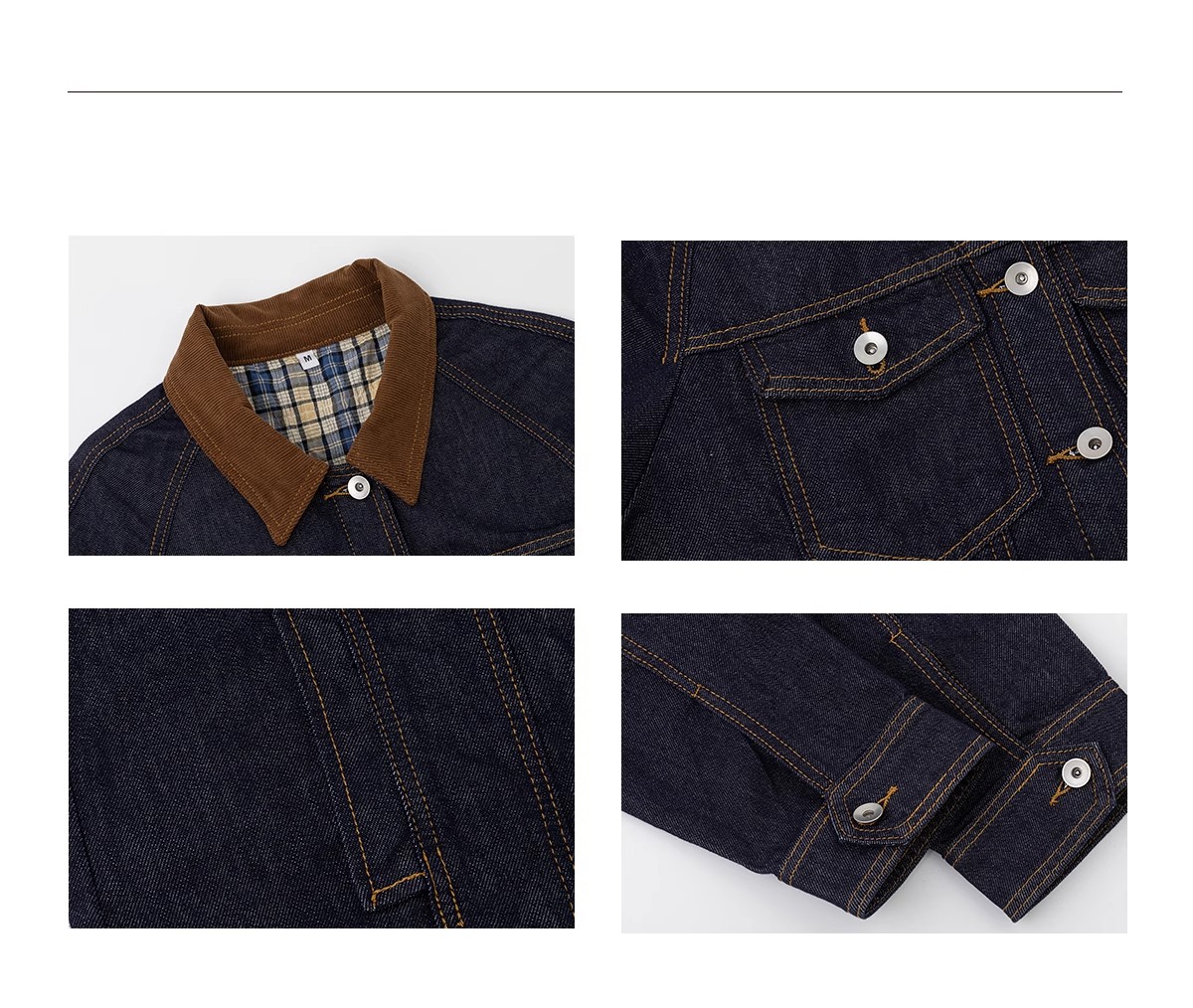 MoodBerry 美式复古牛仔夹克外套女秋季新撞色翻领百搭休闲上衣