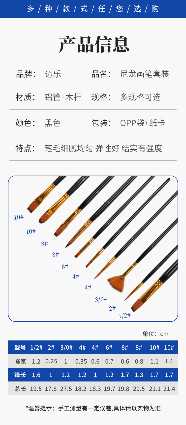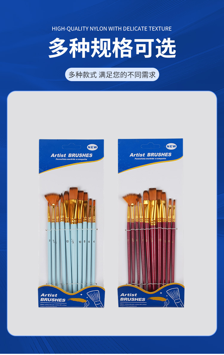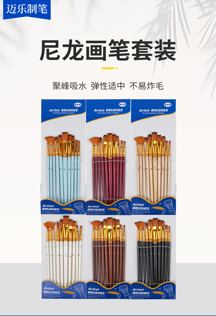 10支画笔混合套装尼龙美术生专用绘画水彩画笔多颜色选择可批发