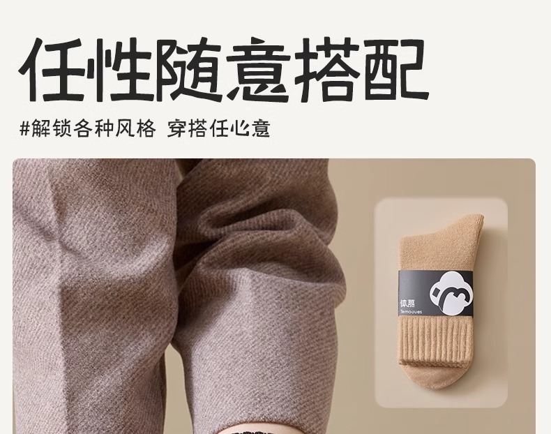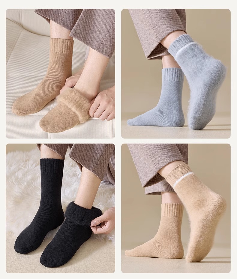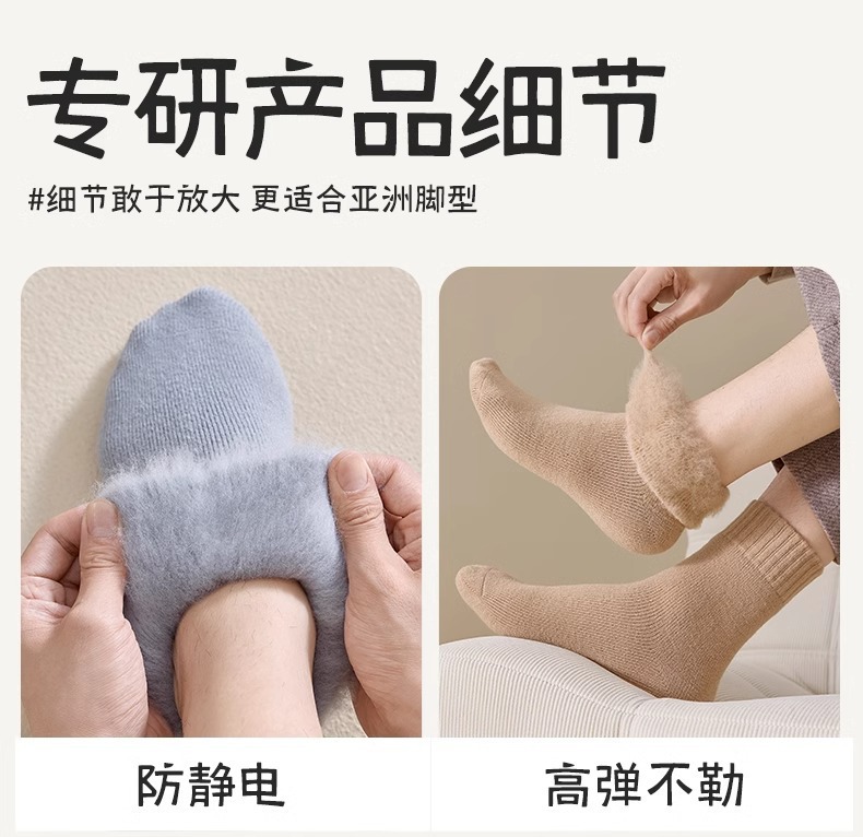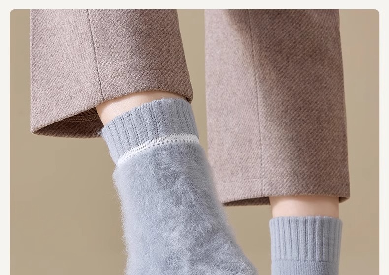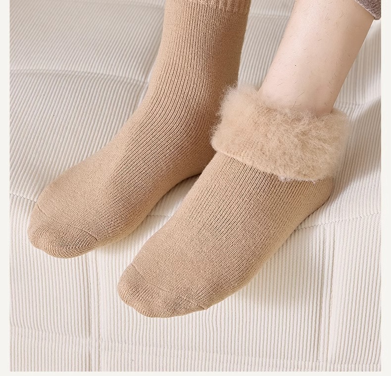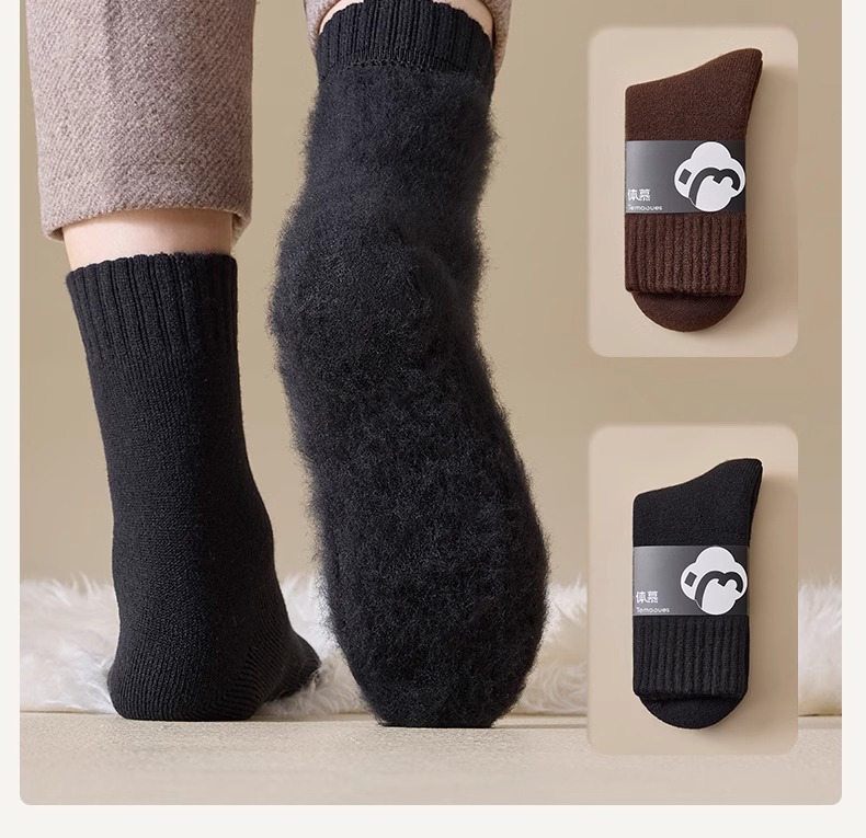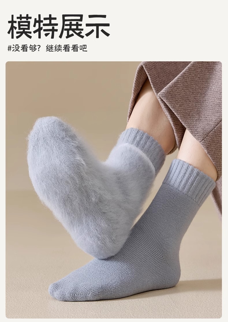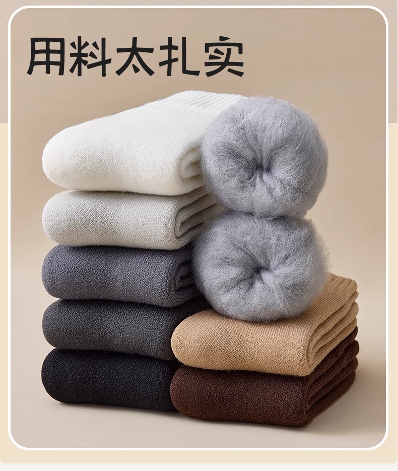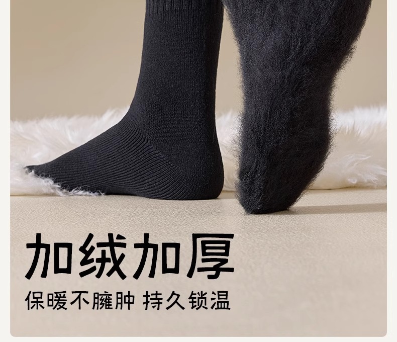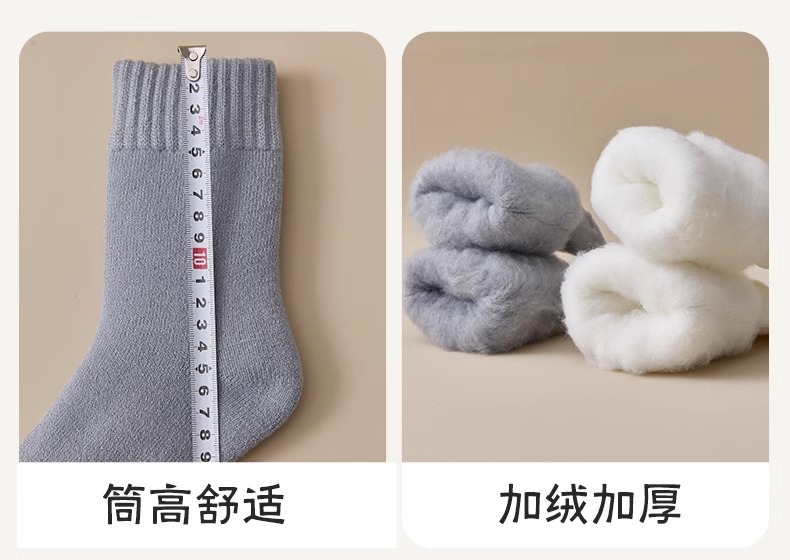 秋冬季袜子女士保暖毛圈袜中筒袜羊绒防臭加厚加绒长筒袜毛绒诸暨