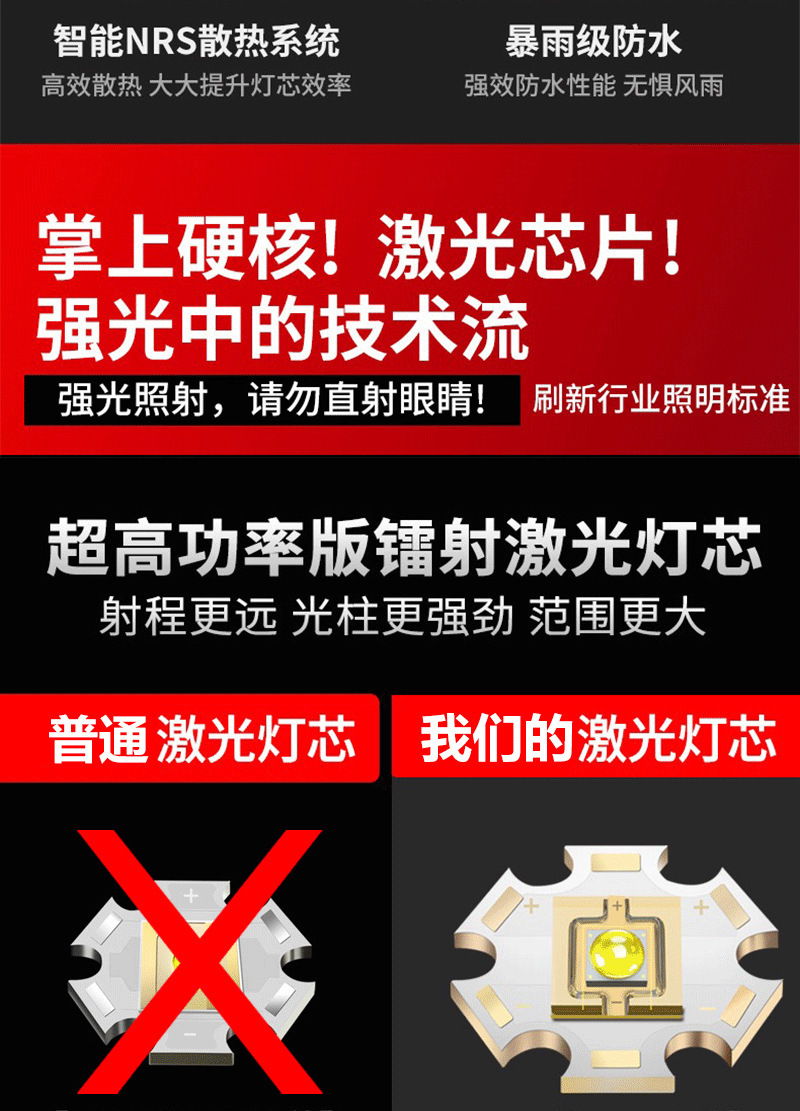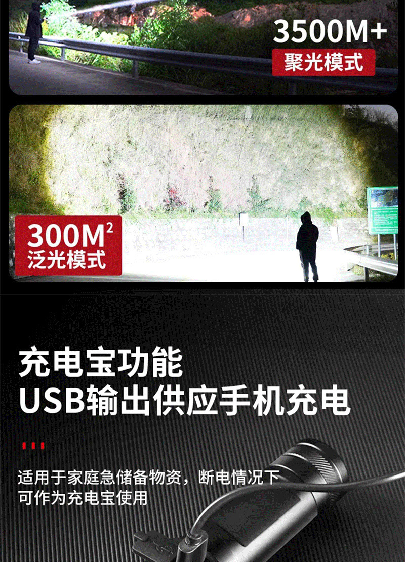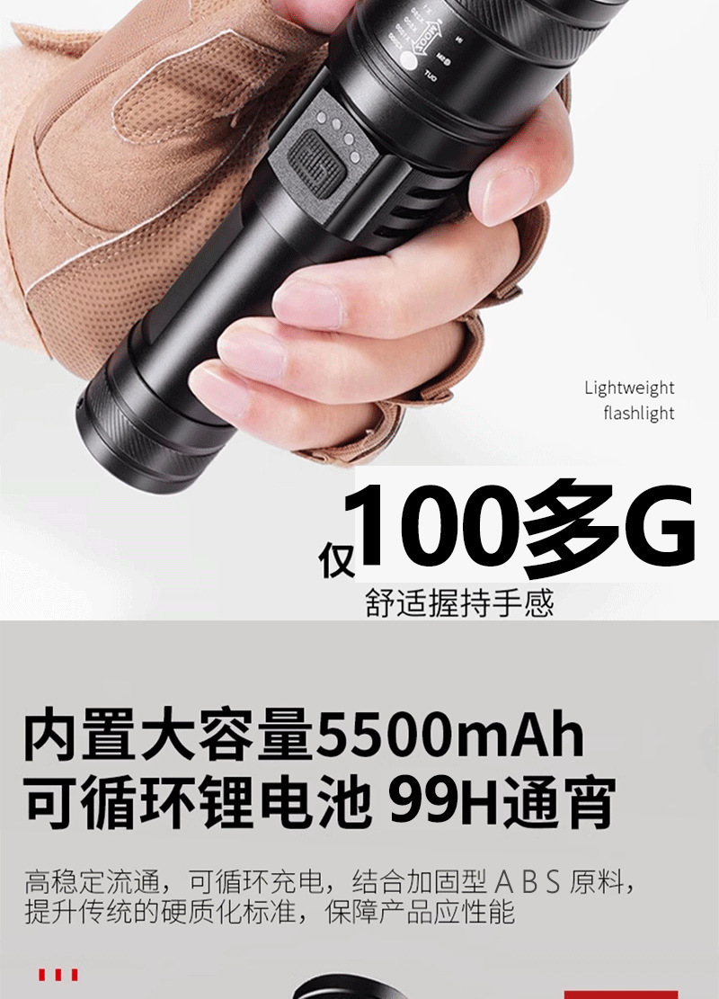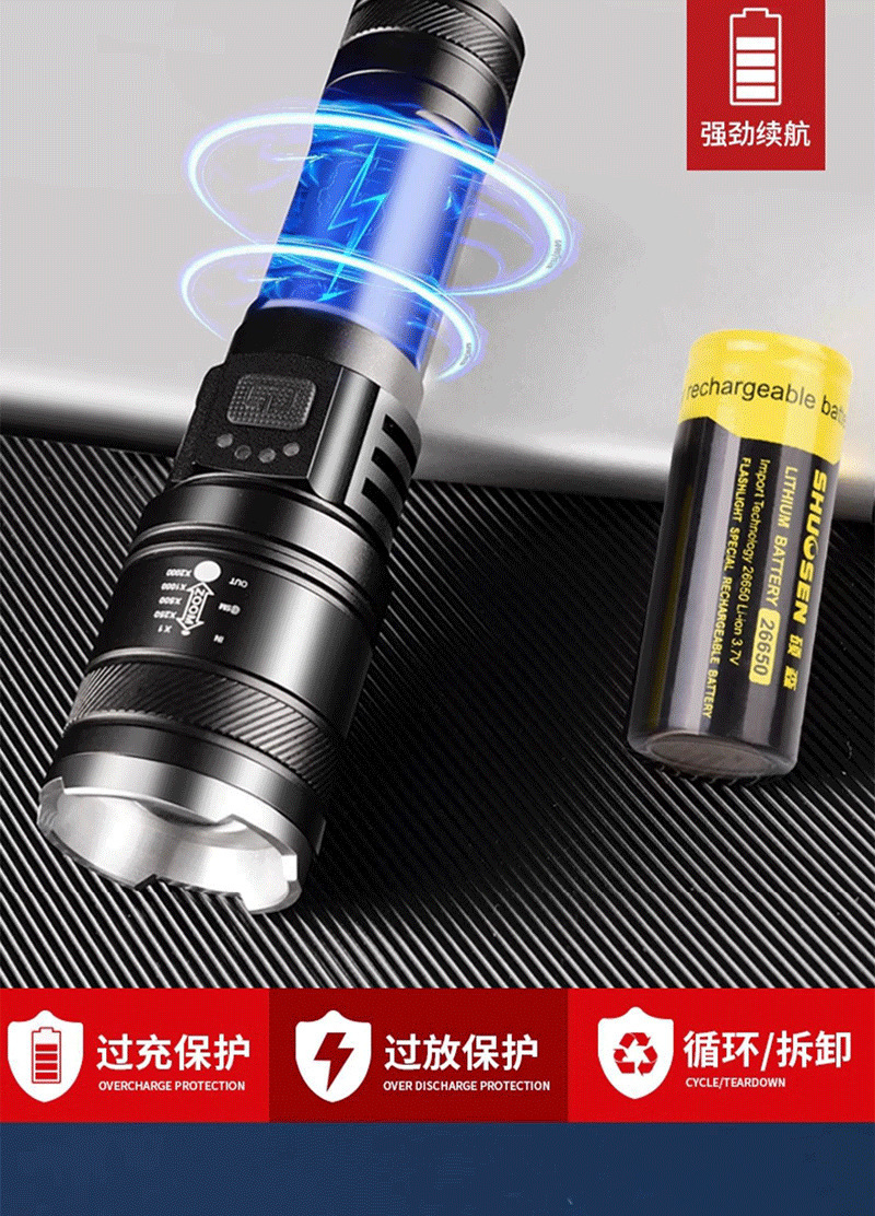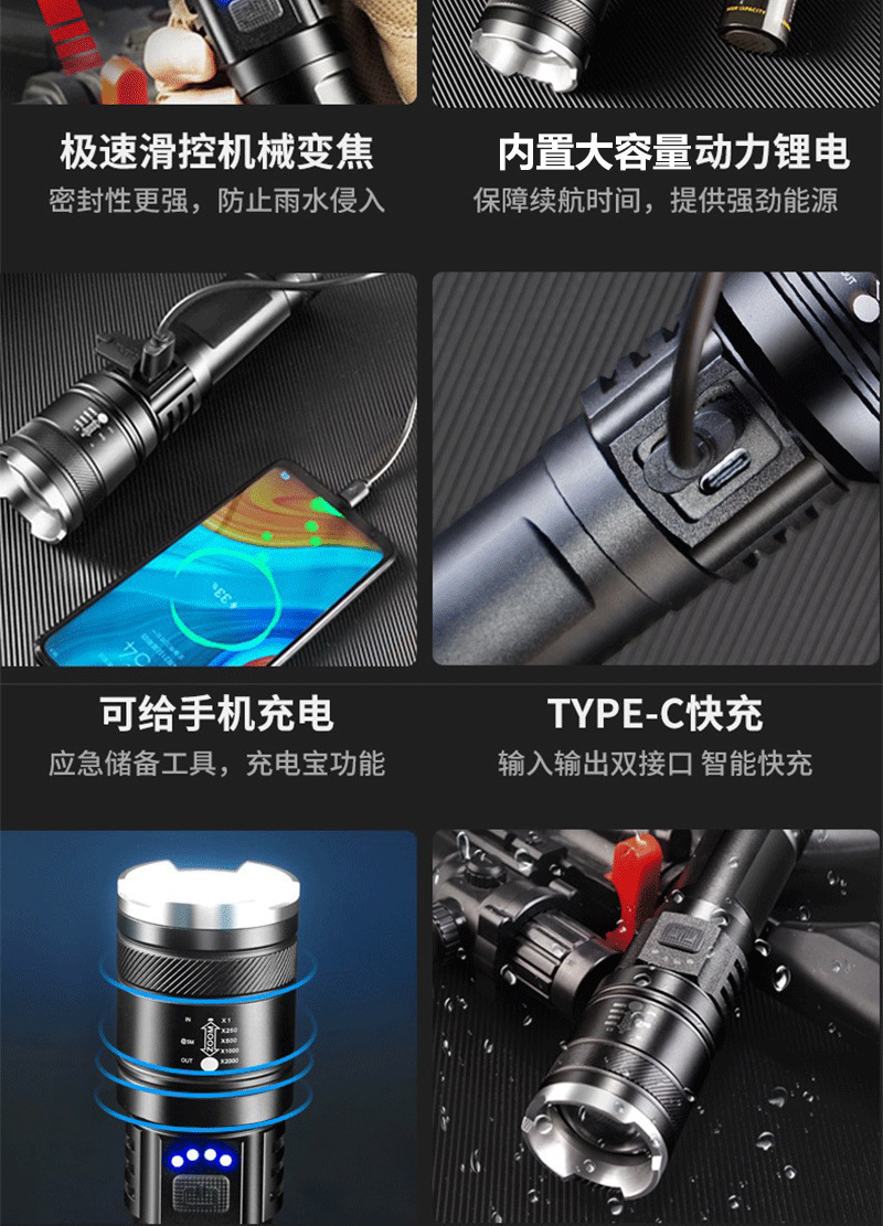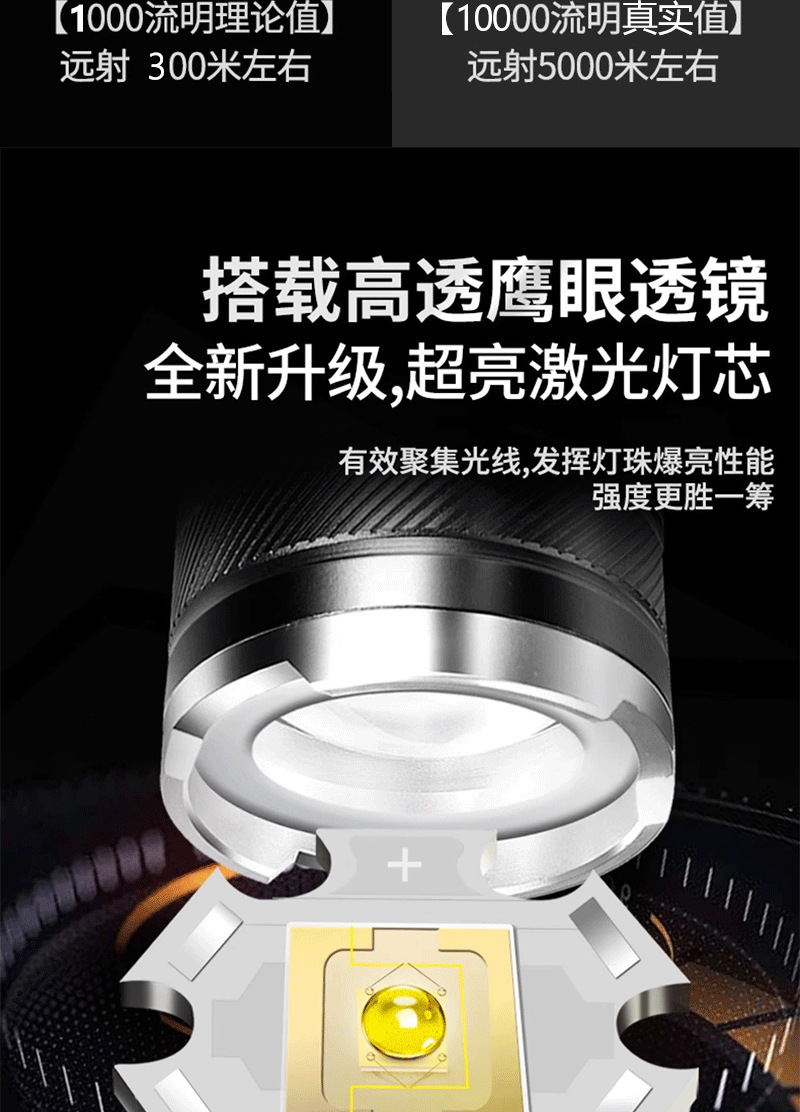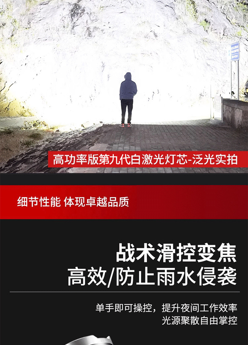 德国工艺】强光手电筒充电灯超亮手提氙气探照灯户外远射超长续航