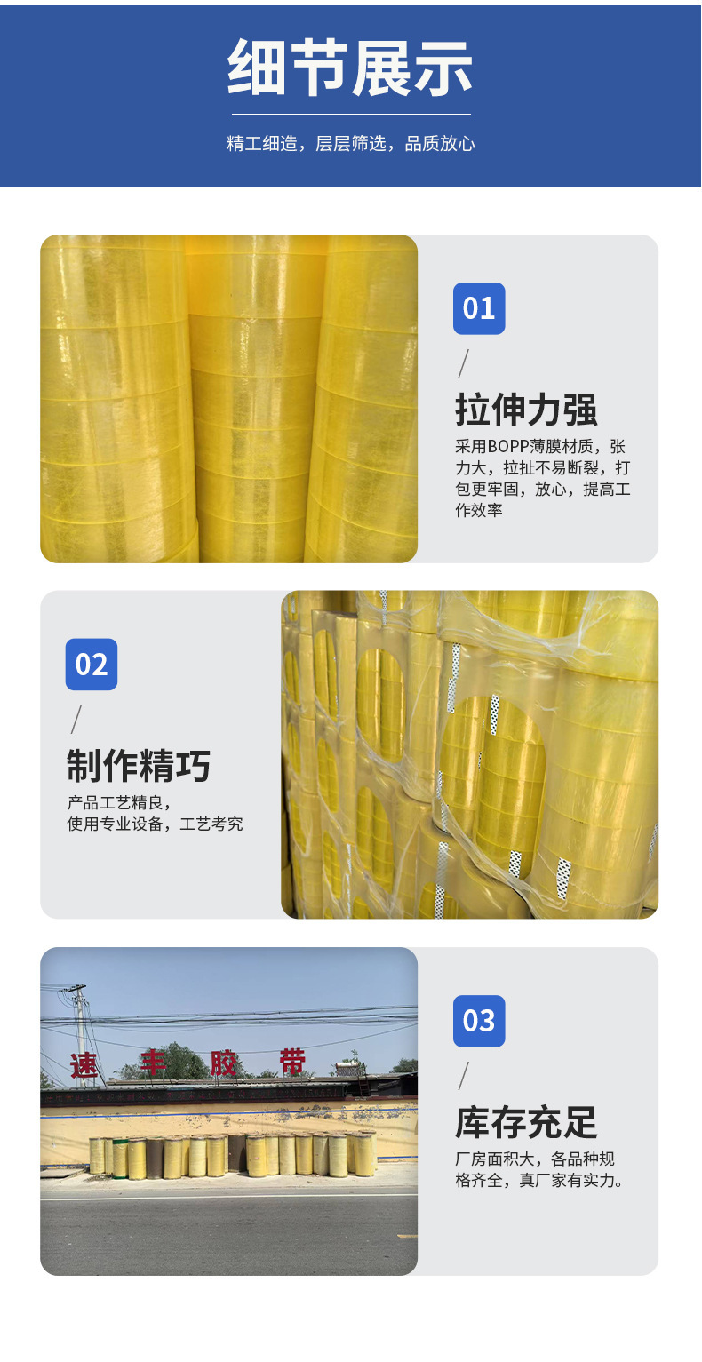 定制透明封箱胶带快递打包封箱胶纸黄色白色胶带物流包装封口胶带