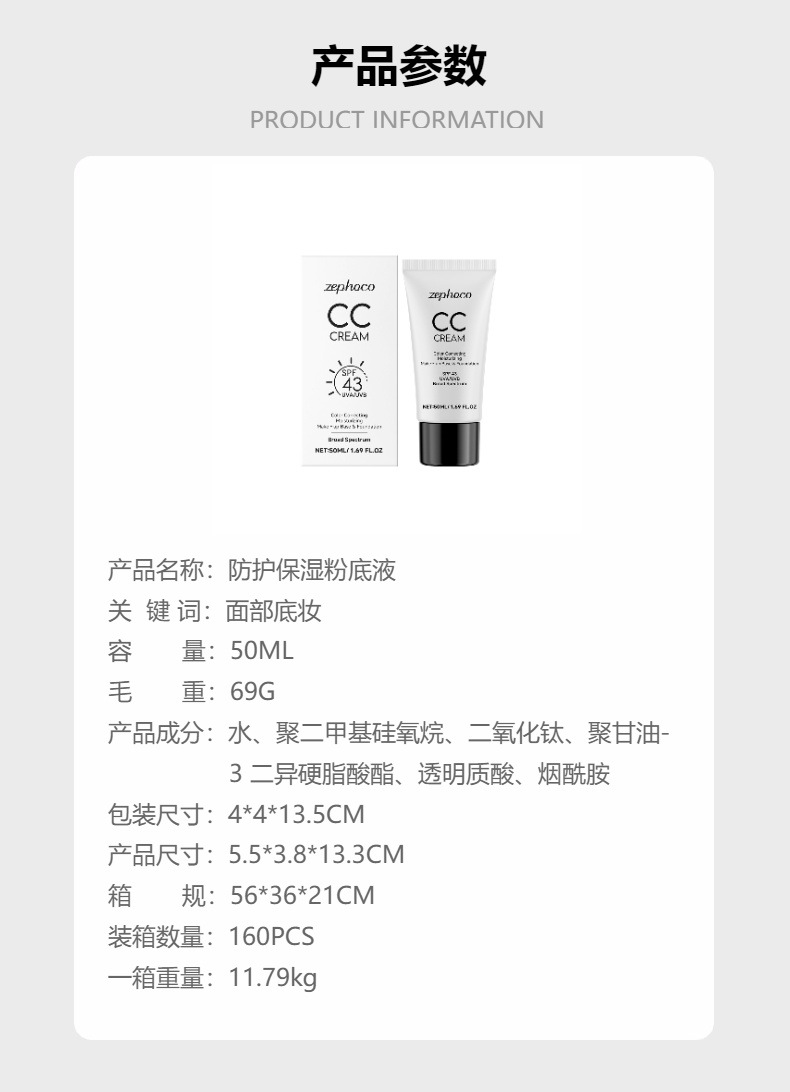 Zephoco 防护保湿粉底液 轻薄保湿提亮清爽水润持久不脱妆粉底液