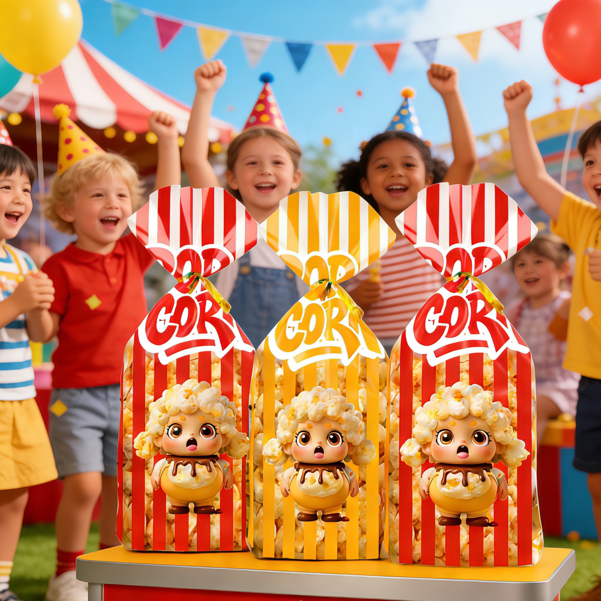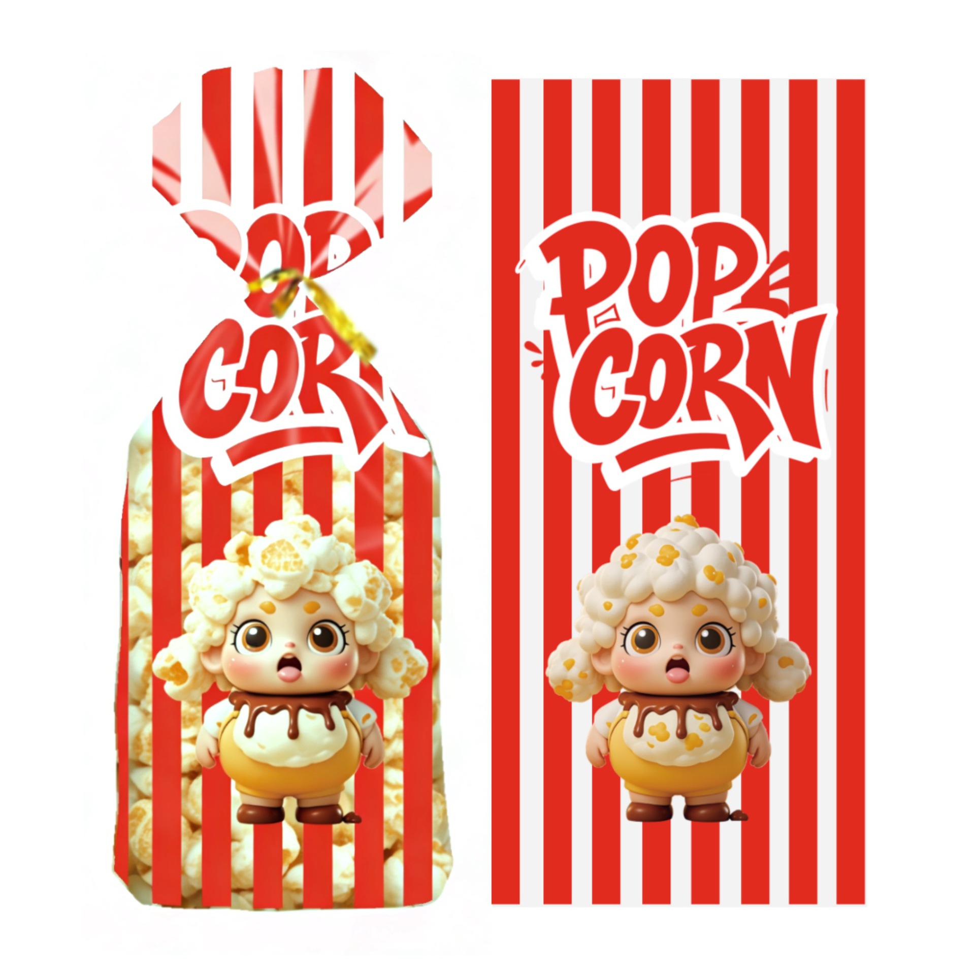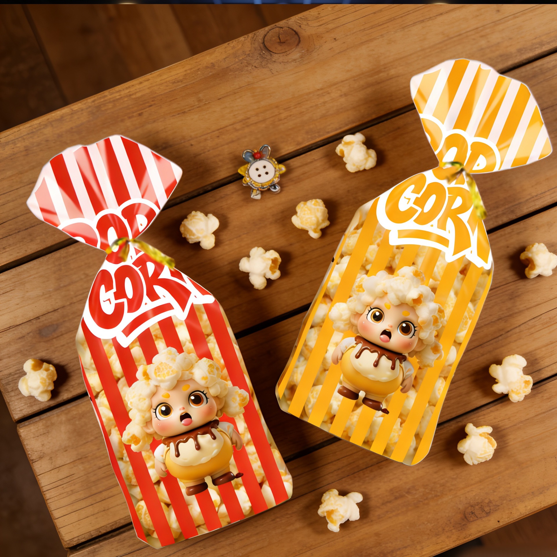爆米花零食平口袋礼品透明包装袋子加厚卡通饼干OPP玻璃纸扎口袋