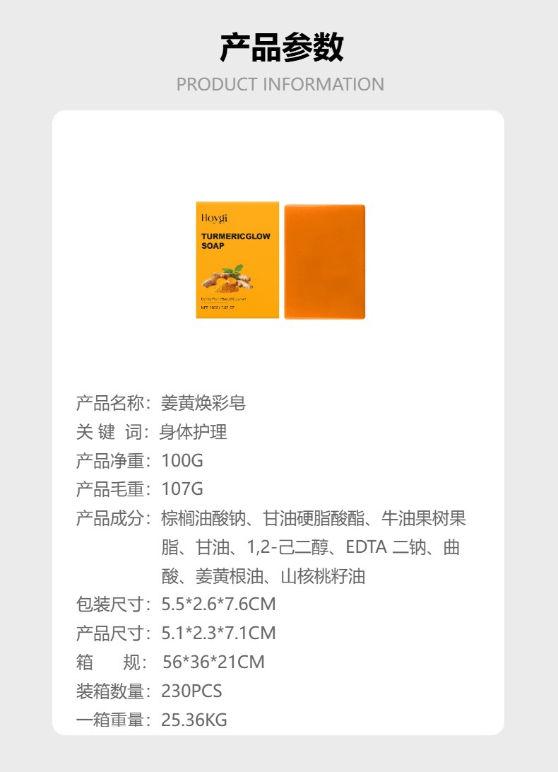 HOYGI 姜黄皂 肌肤保湿清爽清洁日常护肤柔嫩光滑补水身体皂