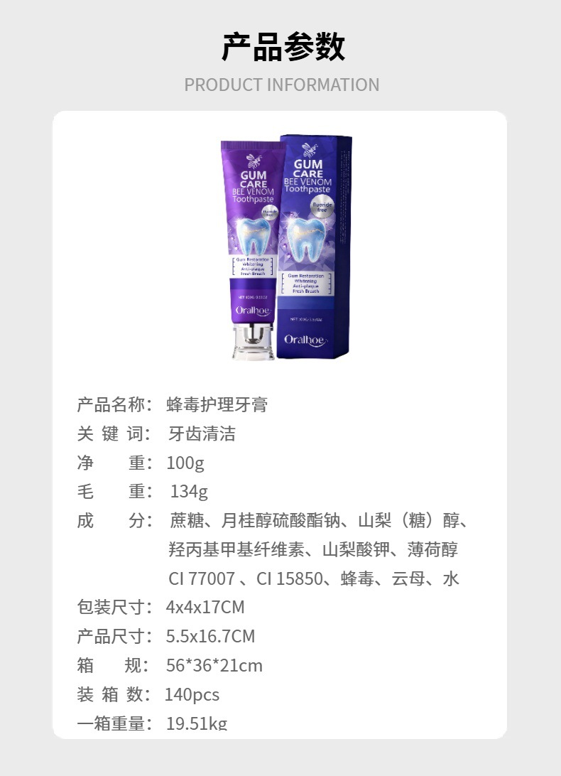 关键词:ORALHOE蜂毒护理牙膏 清新口气护龈固釉日常清洁呵护口
