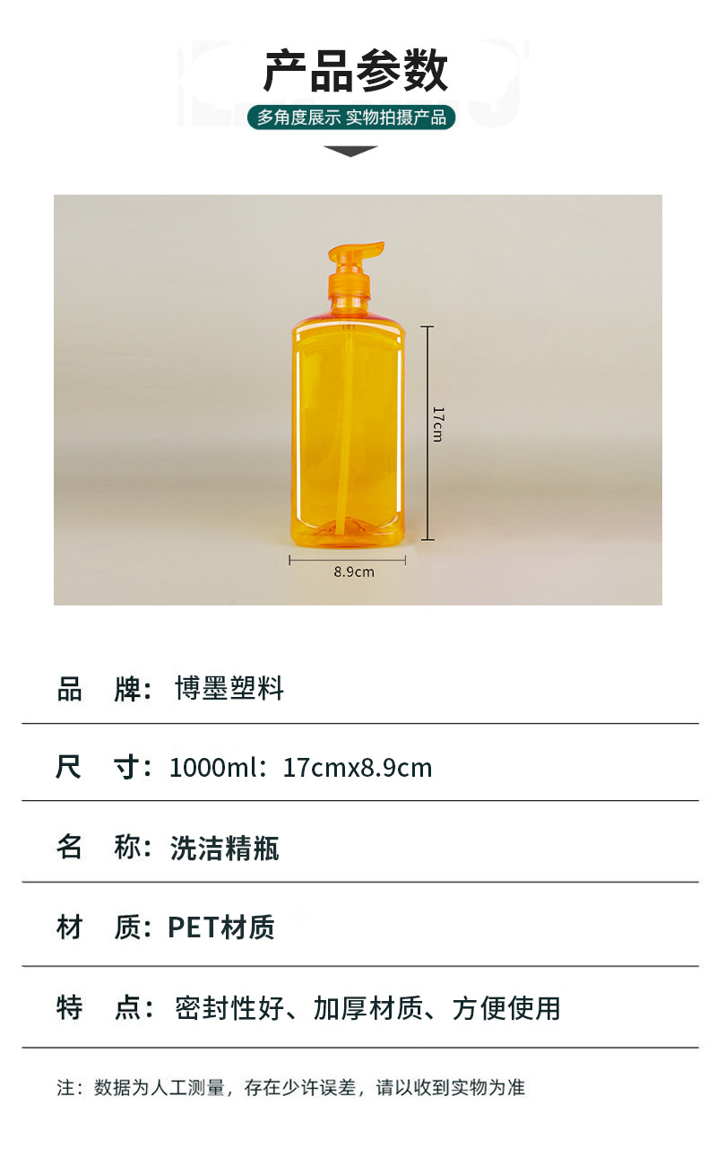 现货供应1L洗洁精瓶PET透明塑料包装瓶洗涤灵瓶洗洁精桶洗洁精瓶
