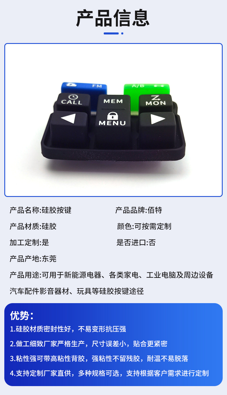 厂家定制硅胶按键镭雕按键透光按键导电喷油印字按键定做