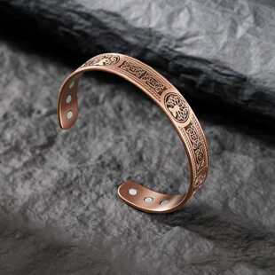 欧美跨境热卖古红铜磁石手链复古时尚三排全磁石可拆卸情侣手环