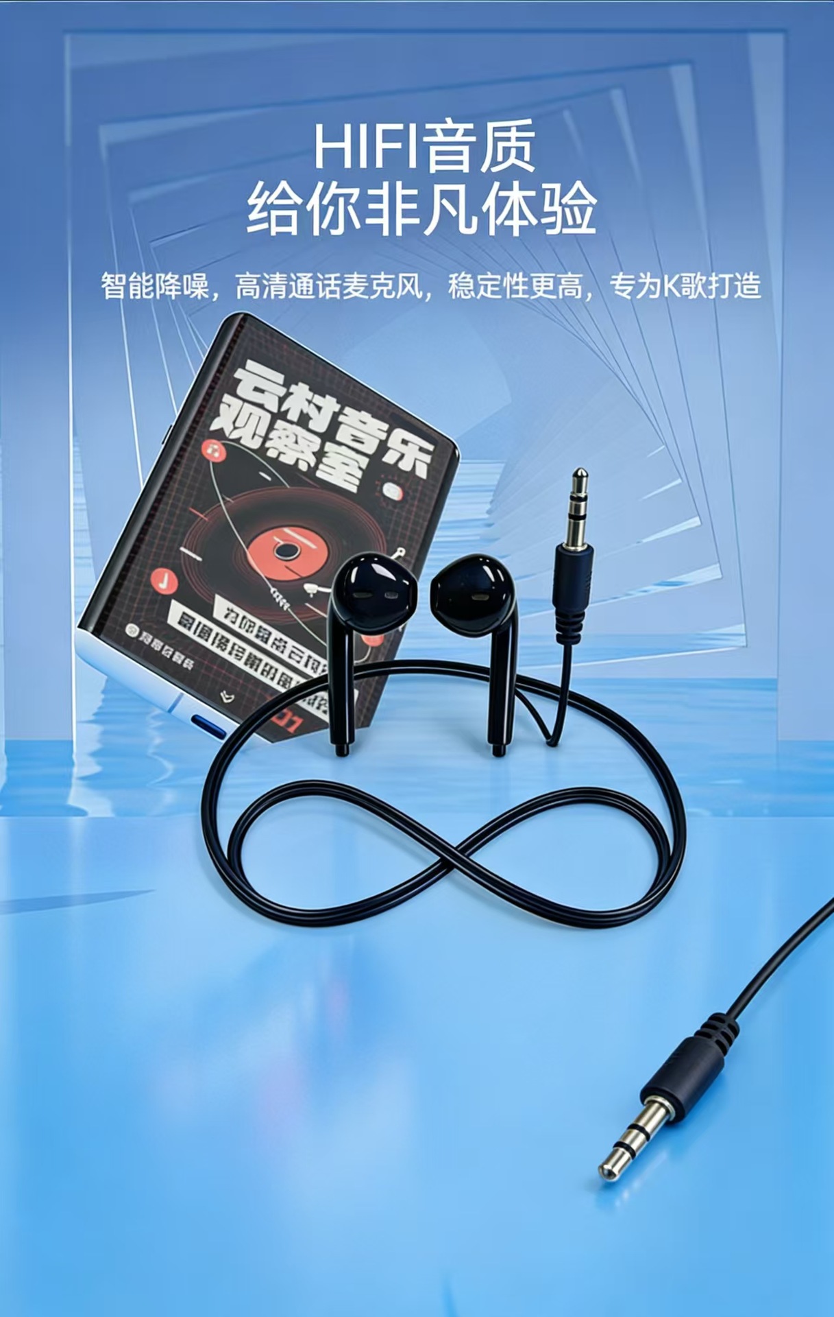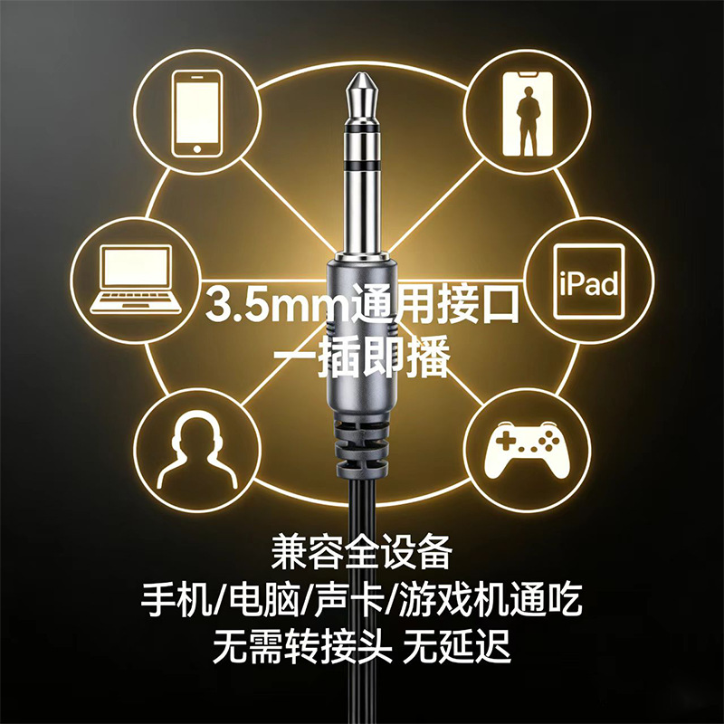 主播直播监听耳机60cm黄金线长清晰拾音无杂音