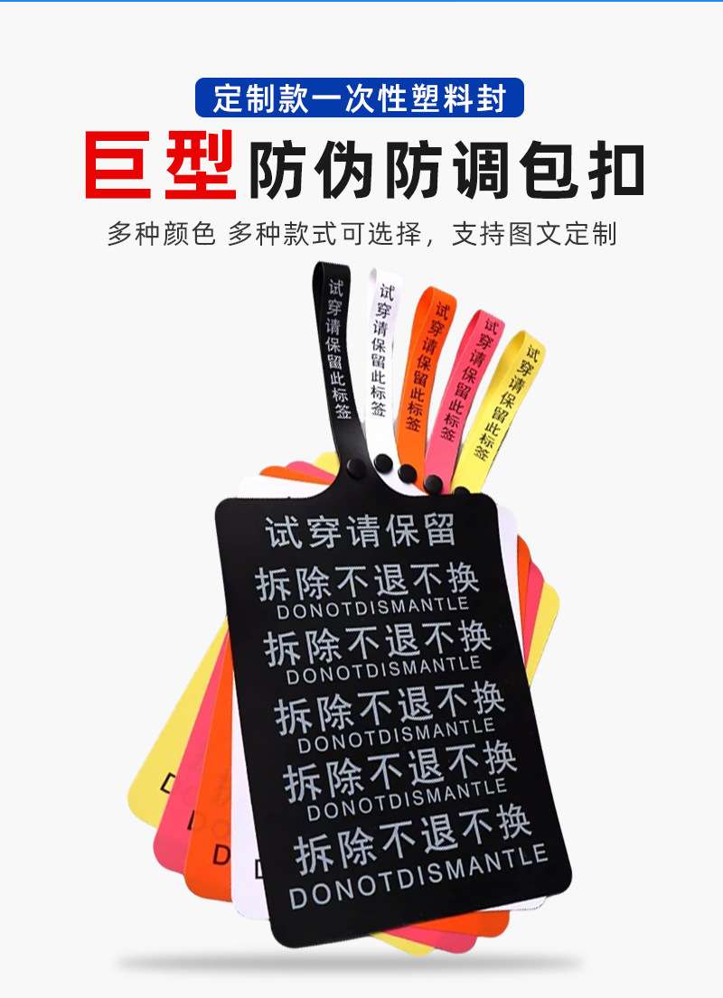 巨型防拆扣定 制防退货服装挂牌防盗扣防穿防调包一次性标签吊牌