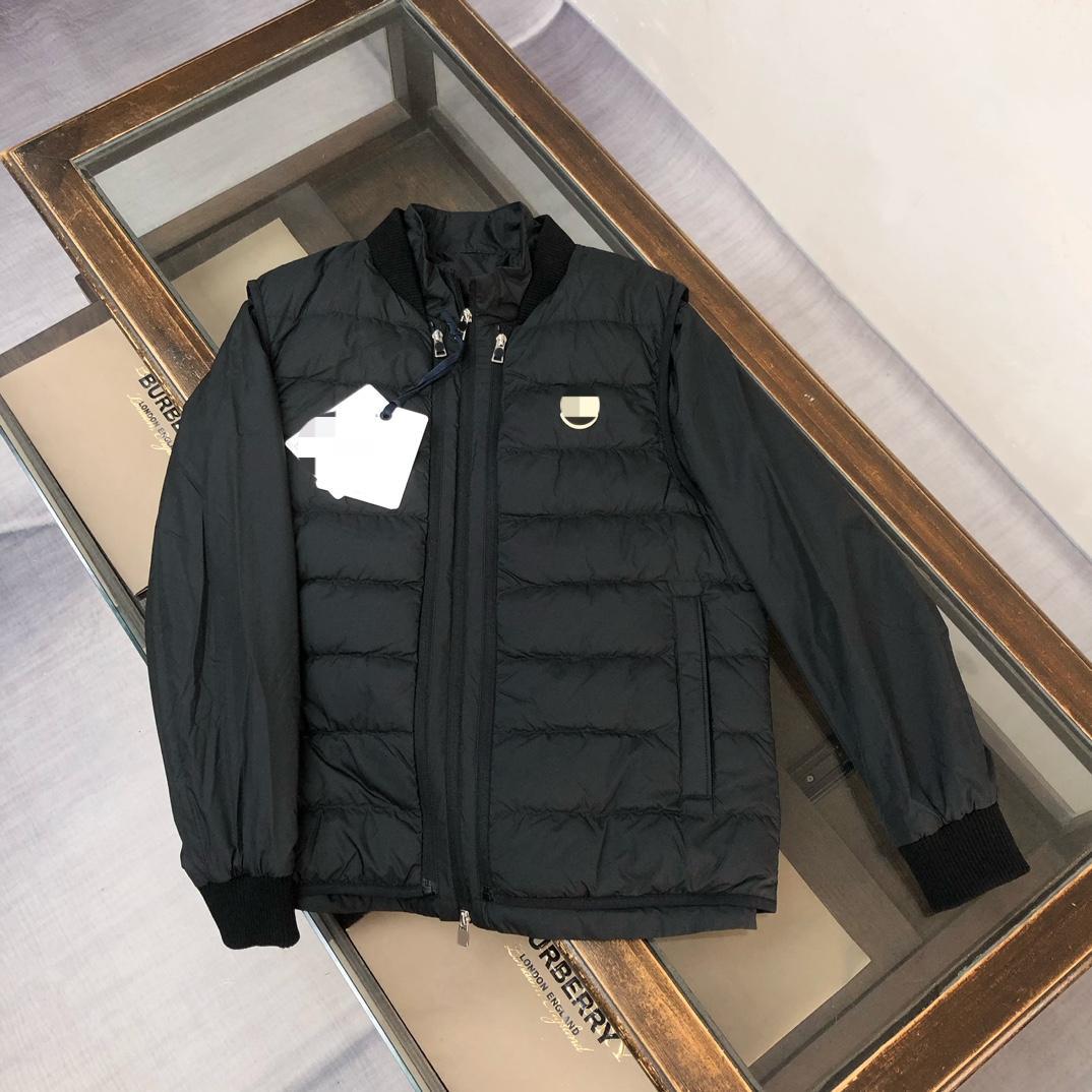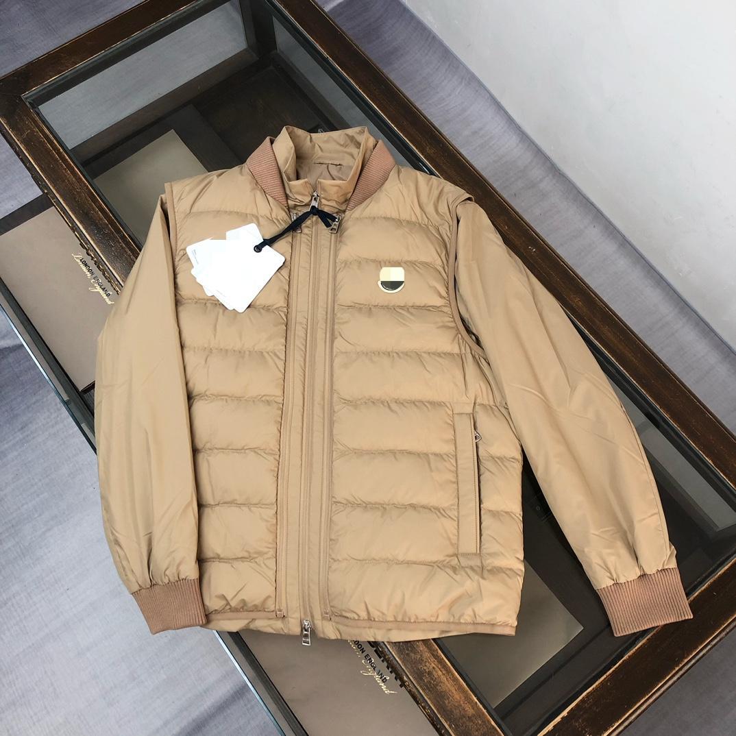 [ 商业 ] 蒙家秋冬新款休闲简约时尚徽章刺绣拉链立领夹克马甲羽绒服两件套