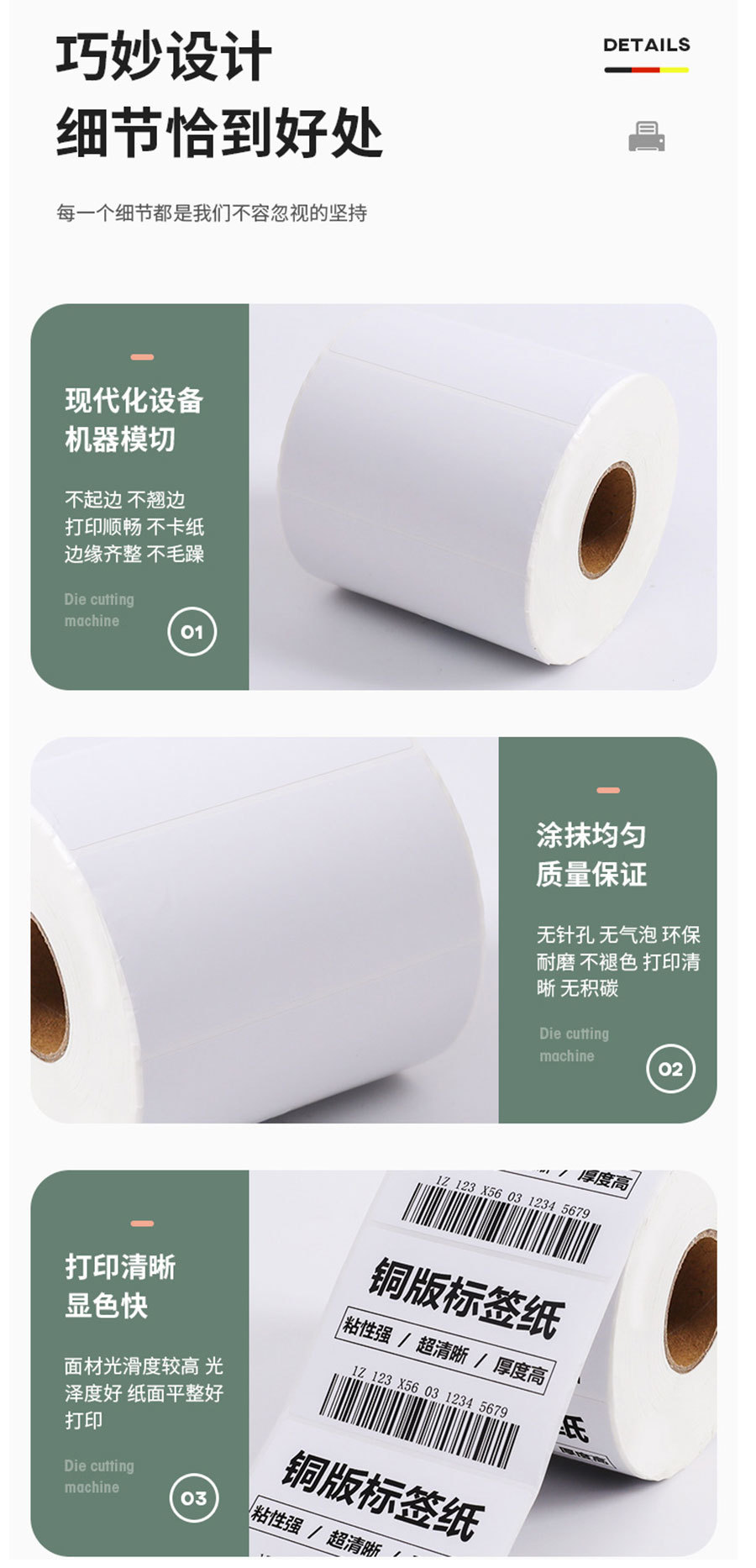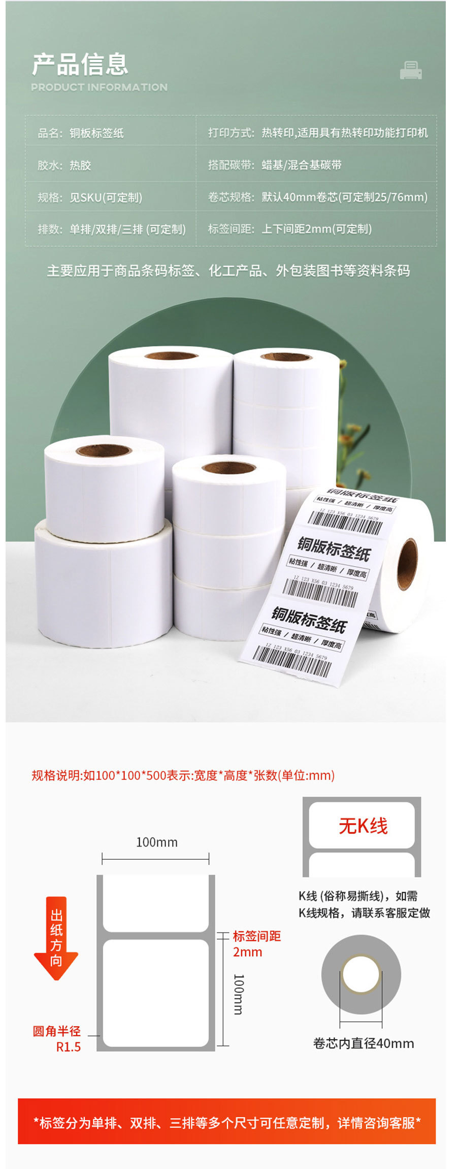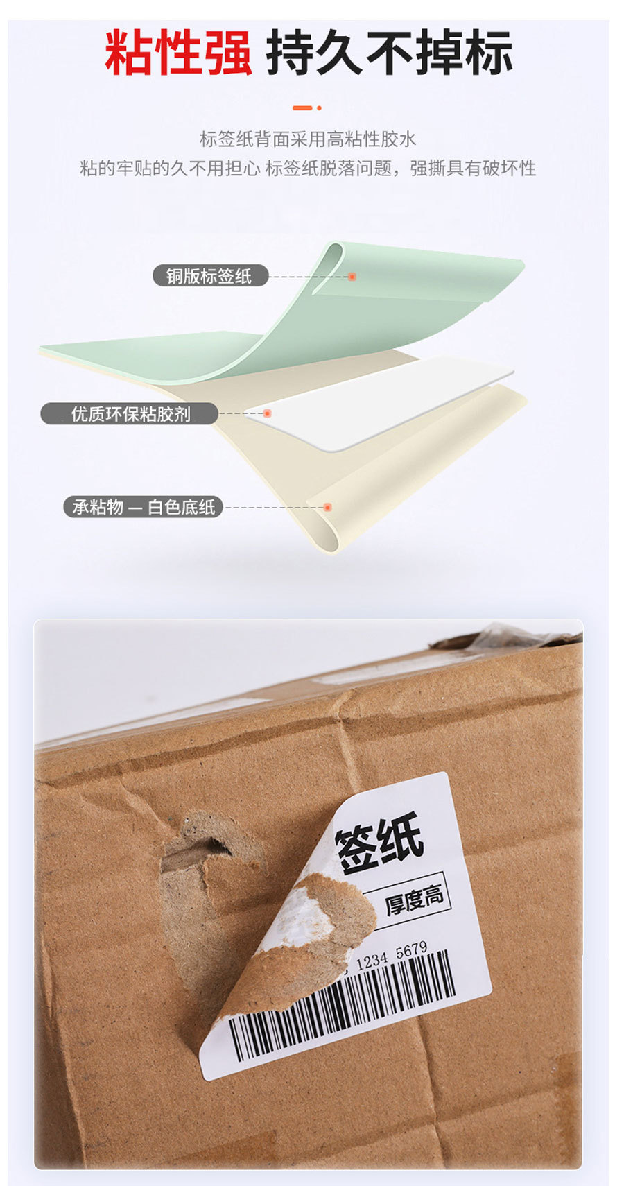 铜版纸不干胶标签铜版纸面贴50×25打印条码纸