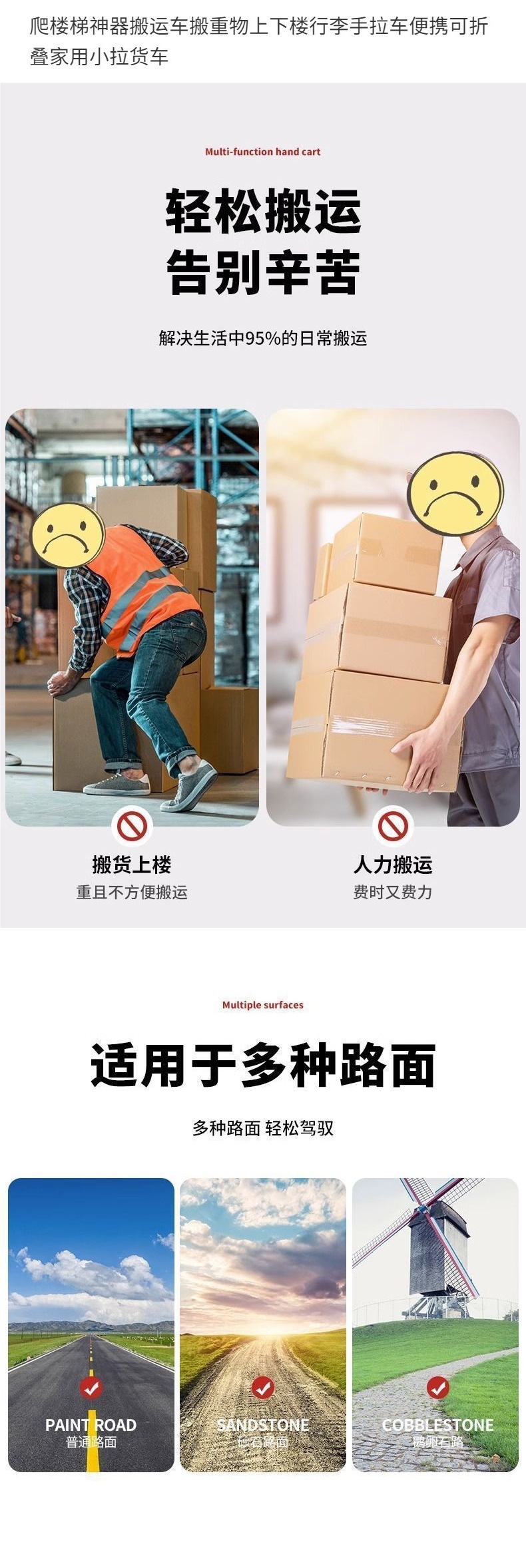 可折叠上重物家用下楼小拉车便携手拉车行李搬运车便搬爬楼梯