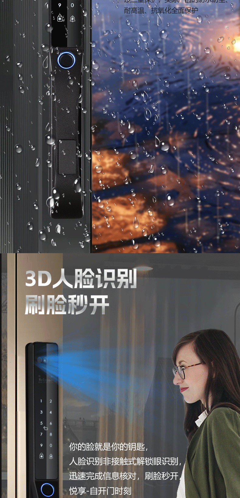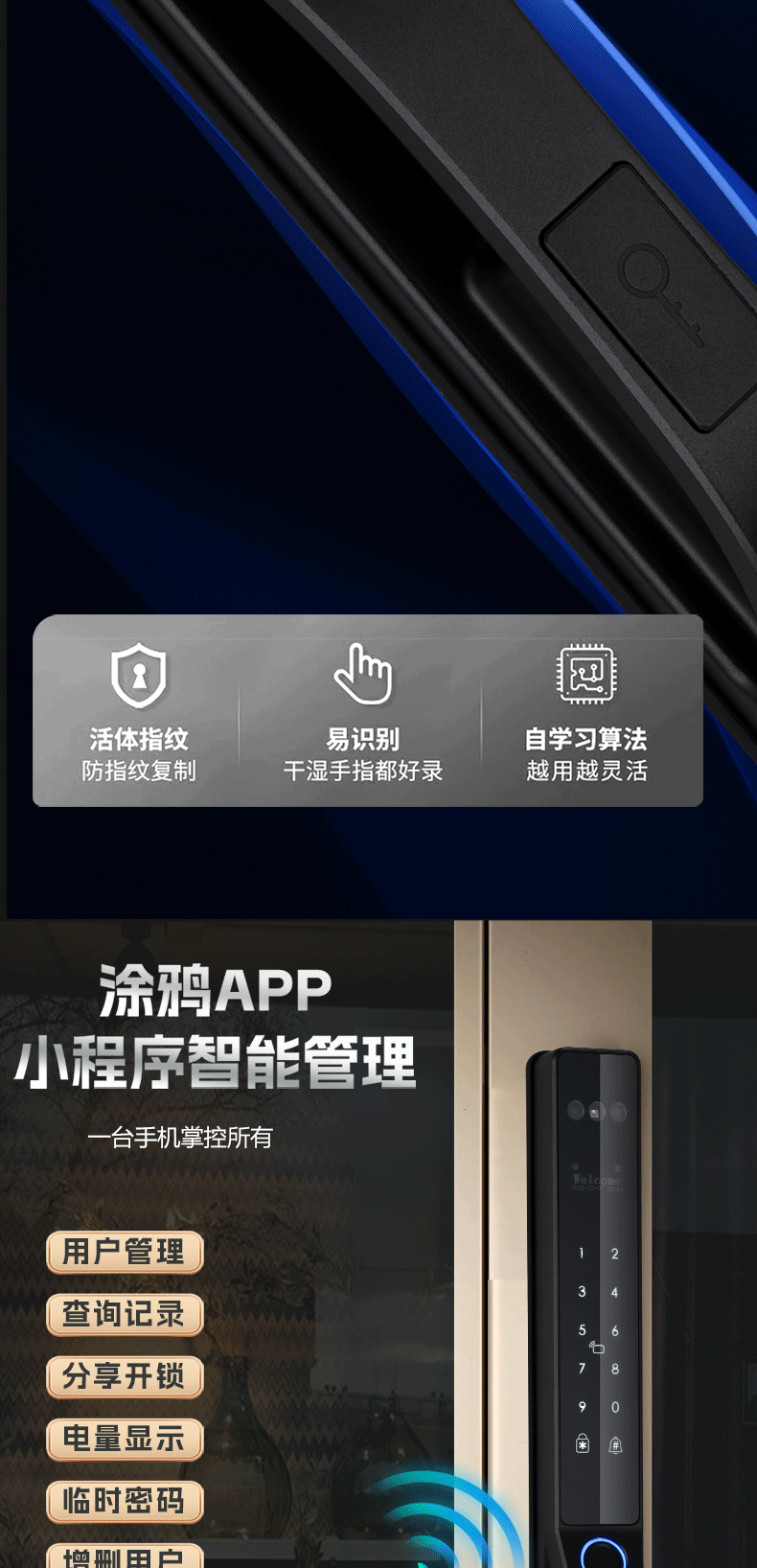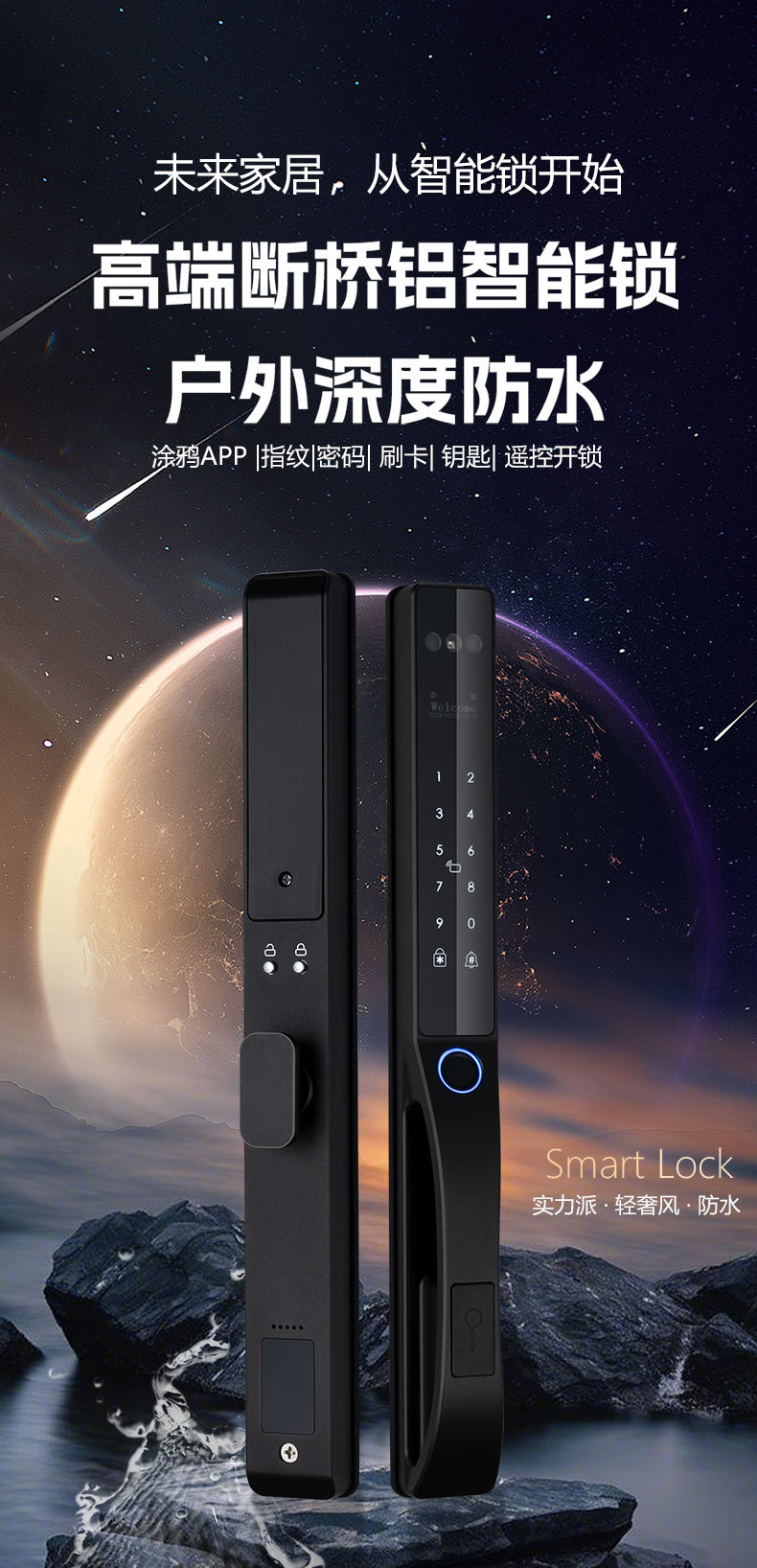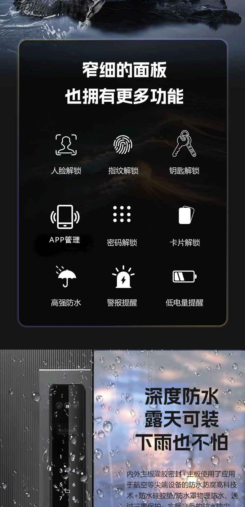 人脸识别庭院商铺防水指纹密码卡片钥匙涂鸦WIFI电子锁智能锁