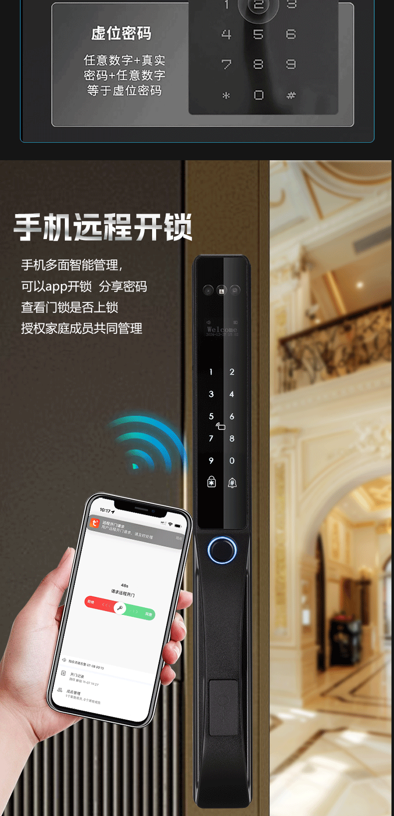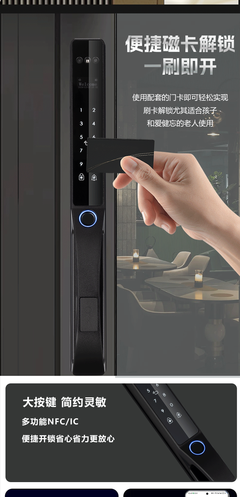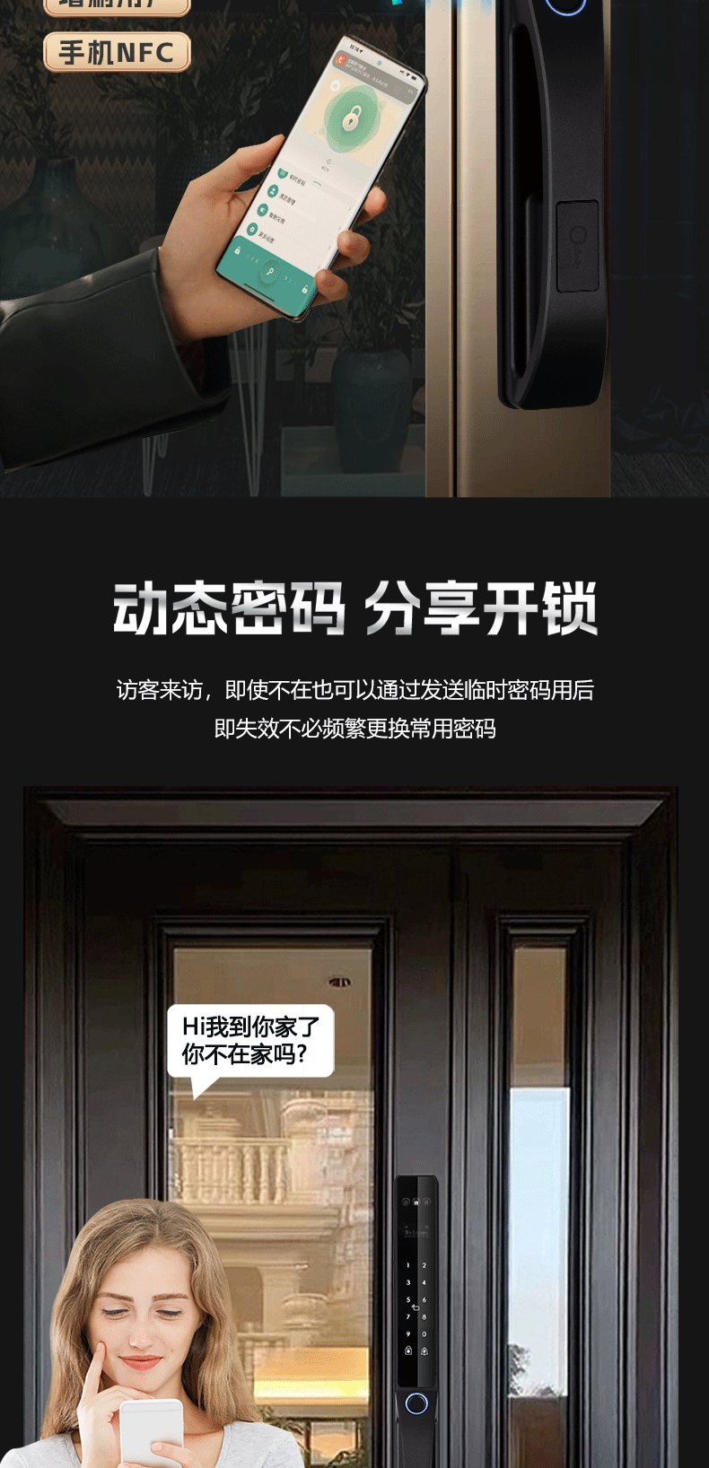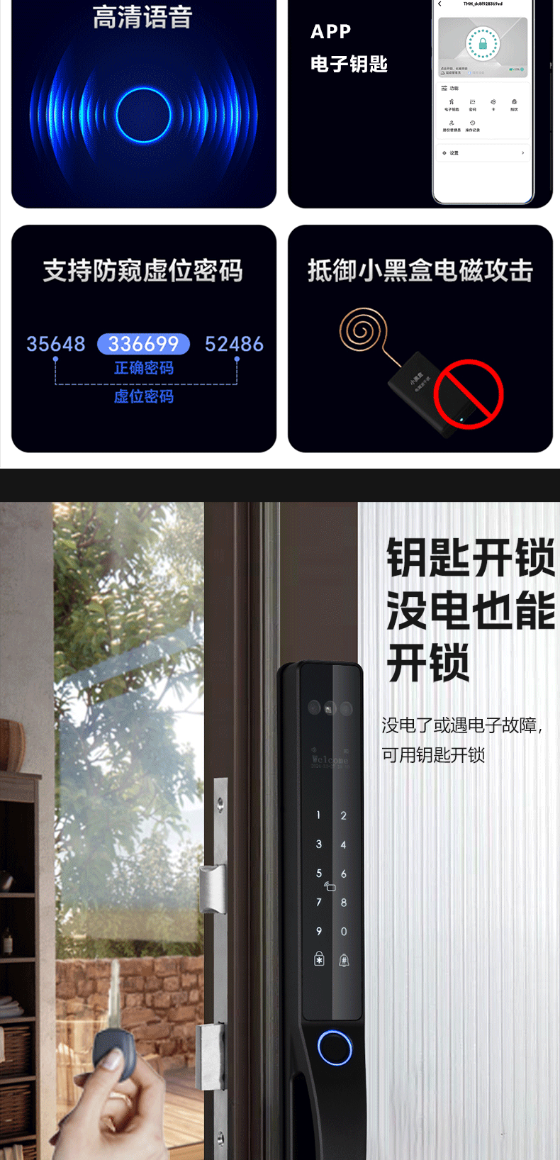 人脸识别庭院商铺防水指纹密码卡片钥匙涂鸦WIFI电子锁智能锁