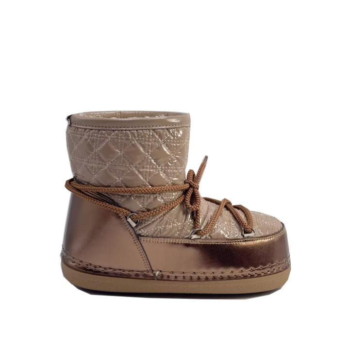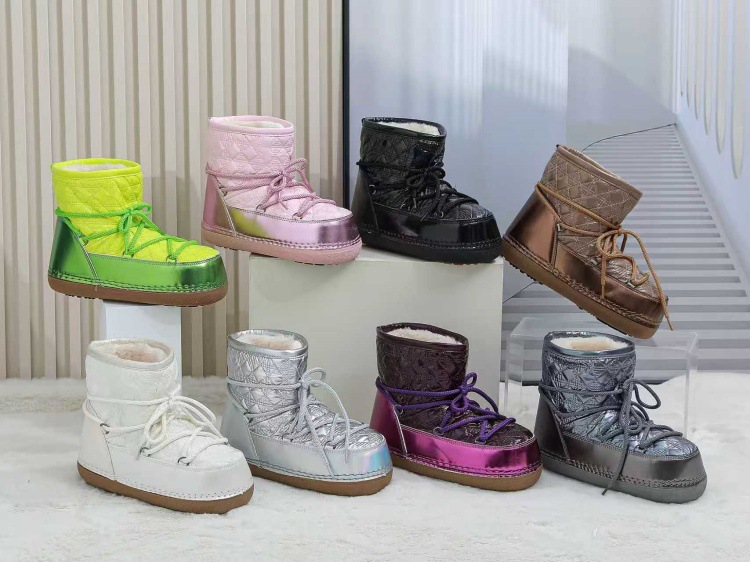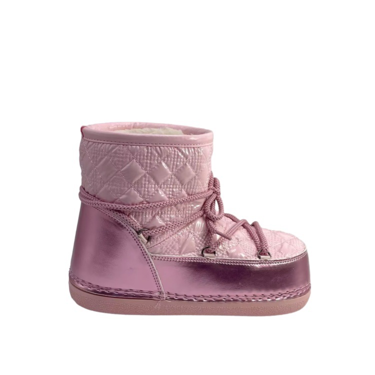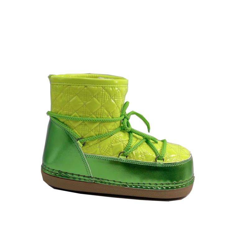 胖墩墩冬季加厚保暖拼色羽绒滑雪靴糖果色可爱防水防滑厚底雪地靴
