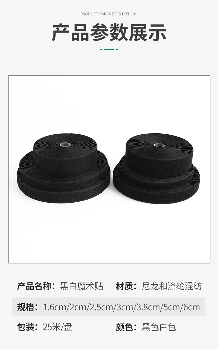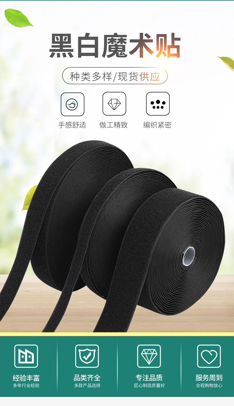 推荐理由:厂家批发魔术贴 强粘黑白勾面毛面粘扣带服装家纺尼龙混纺魔术贴