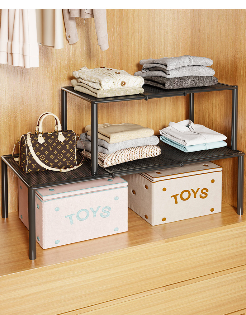 可伸缩衣柜分层隔板衣柜内收纳架厨房橱柜衣柜自由伸缩层板金属架