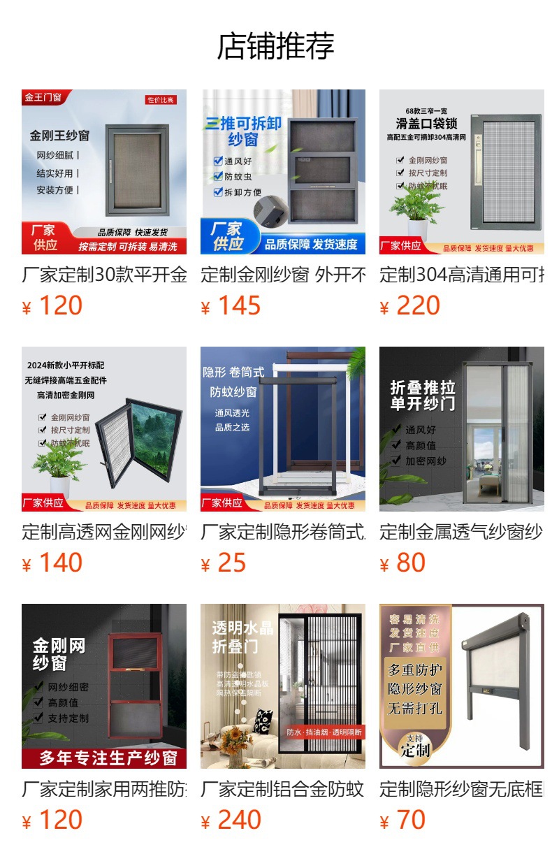 厂家定制30款平开金刚网纱窗 高楼防护窗 内外开可拆卸高清网纱窗