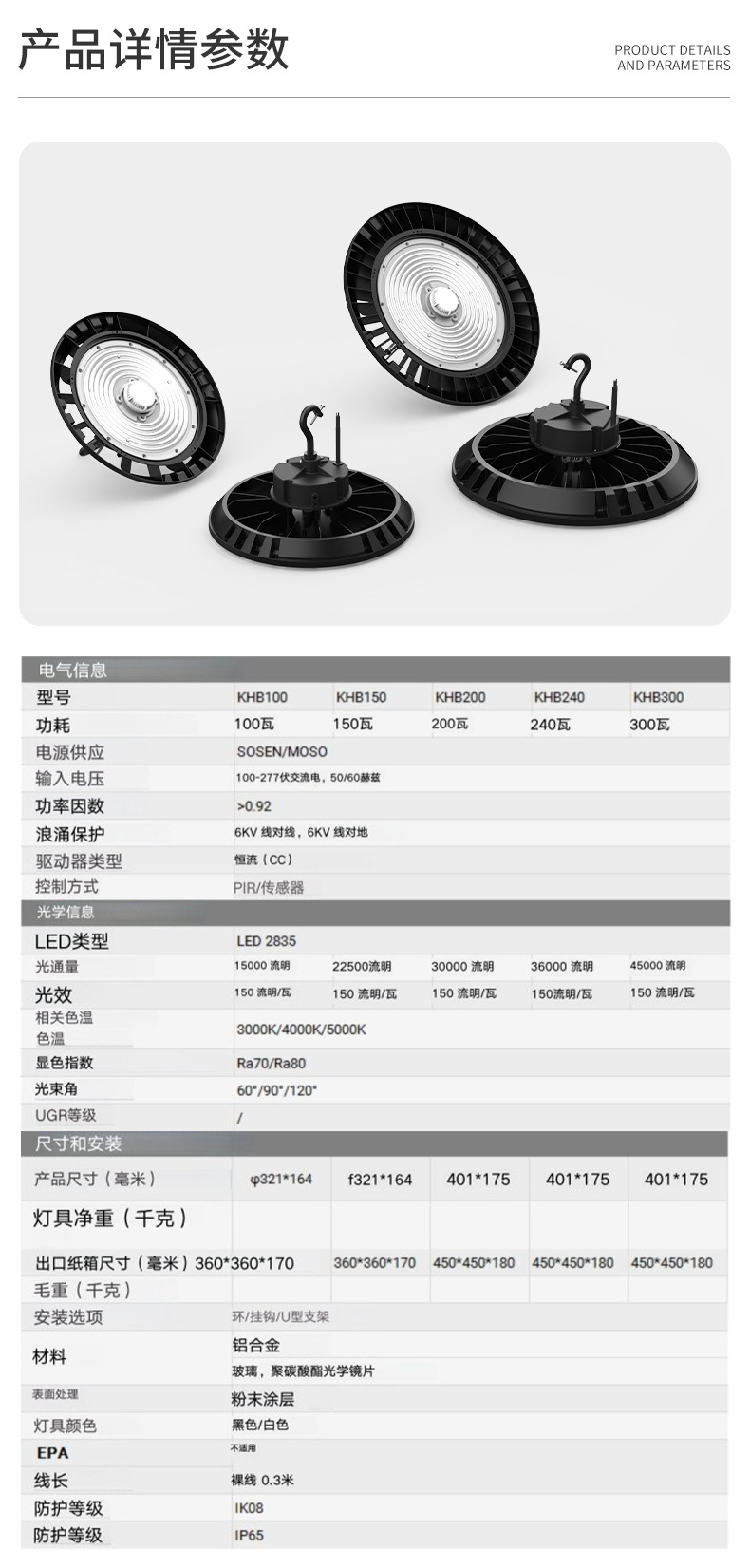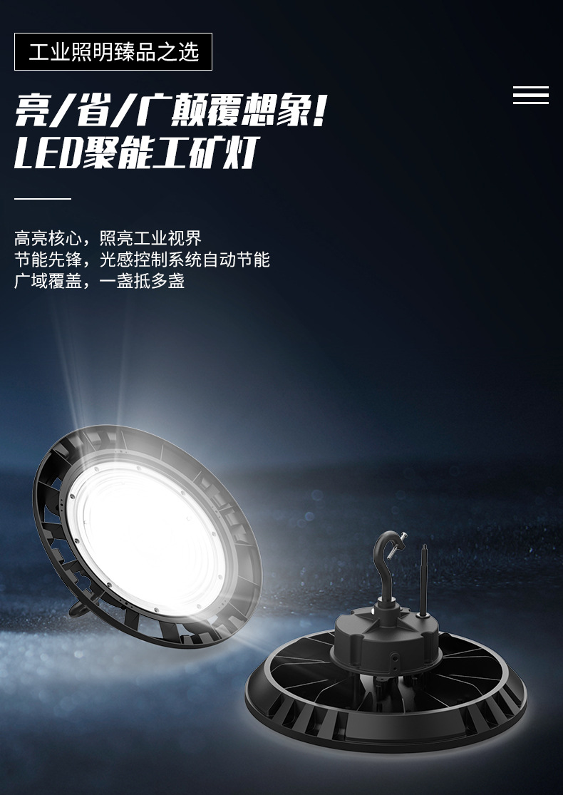 LED工矿灯150W200W300W雷达感应灯防水工厂灯UFO仓库灯车间照明灯