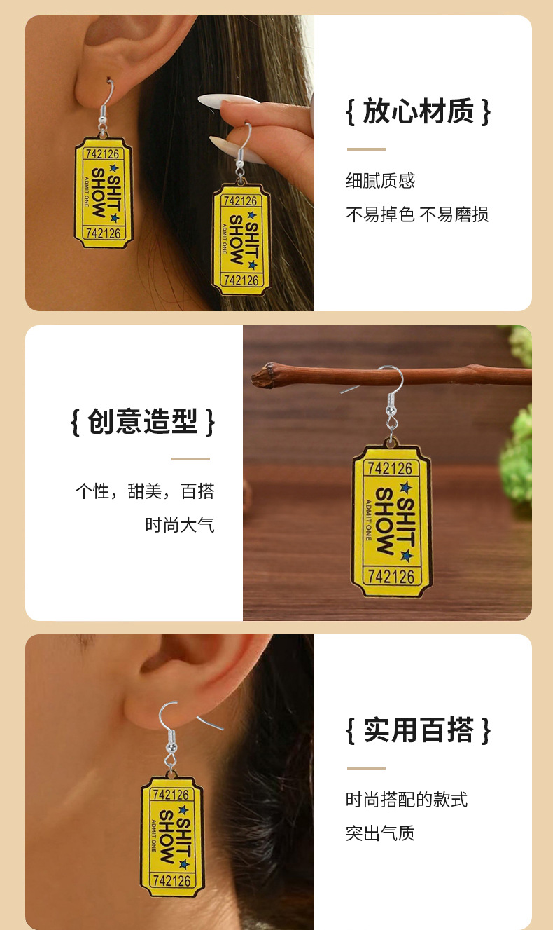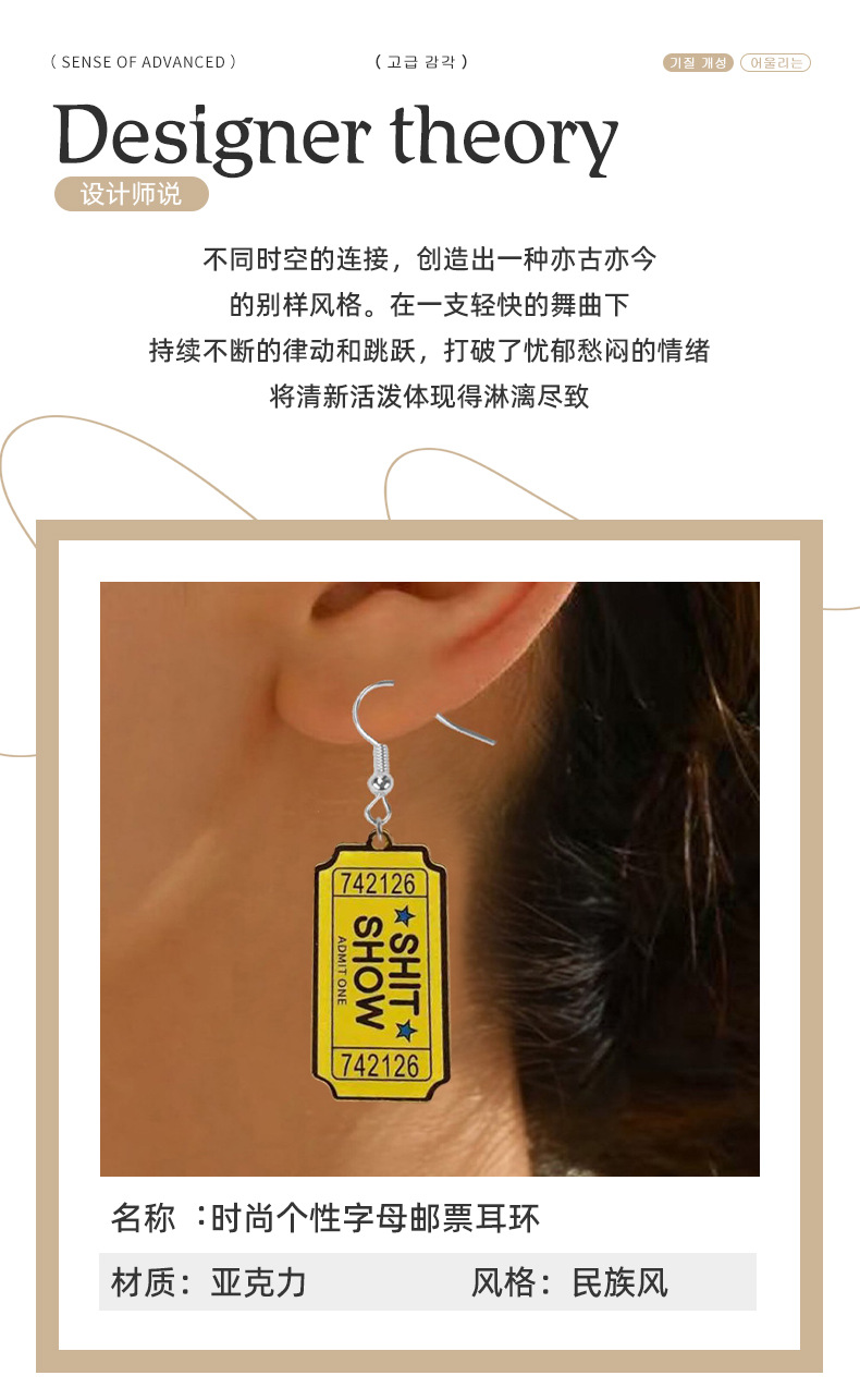 新款字母邮票耳环趣味个性耳环时尚百搭饰品欧美小众个性耳饰批发