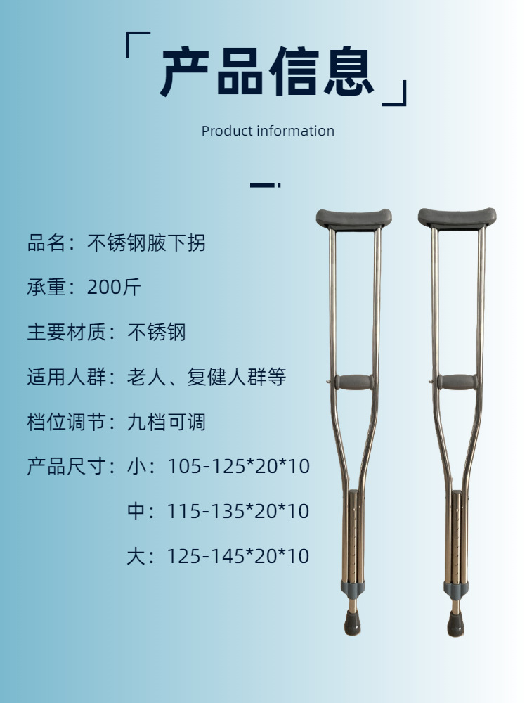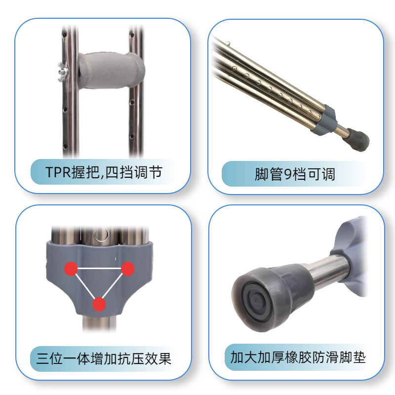 拐杖不锈钢腋下拐老人拐杖年轻人户外康复防滑可调节双拐拐棍定制