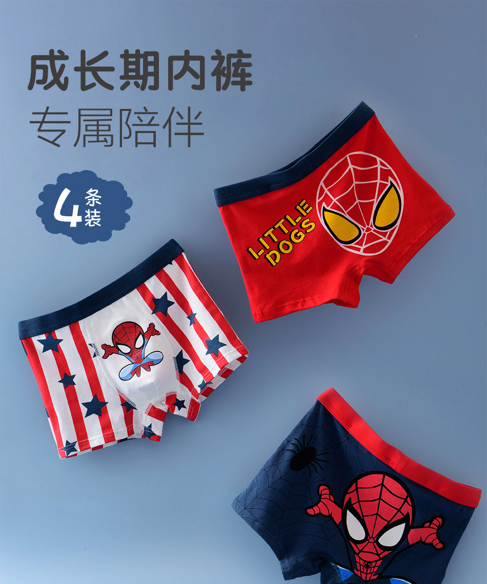 男童内裤卡通纯棉A类学生青少年中大童平角四角裤成长发育短裤衩