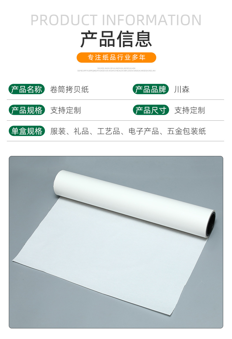 定制拷贝卷筒纸隔层纸A4包装纸防潮礼品花束卷筒拷贝纸可印印花
