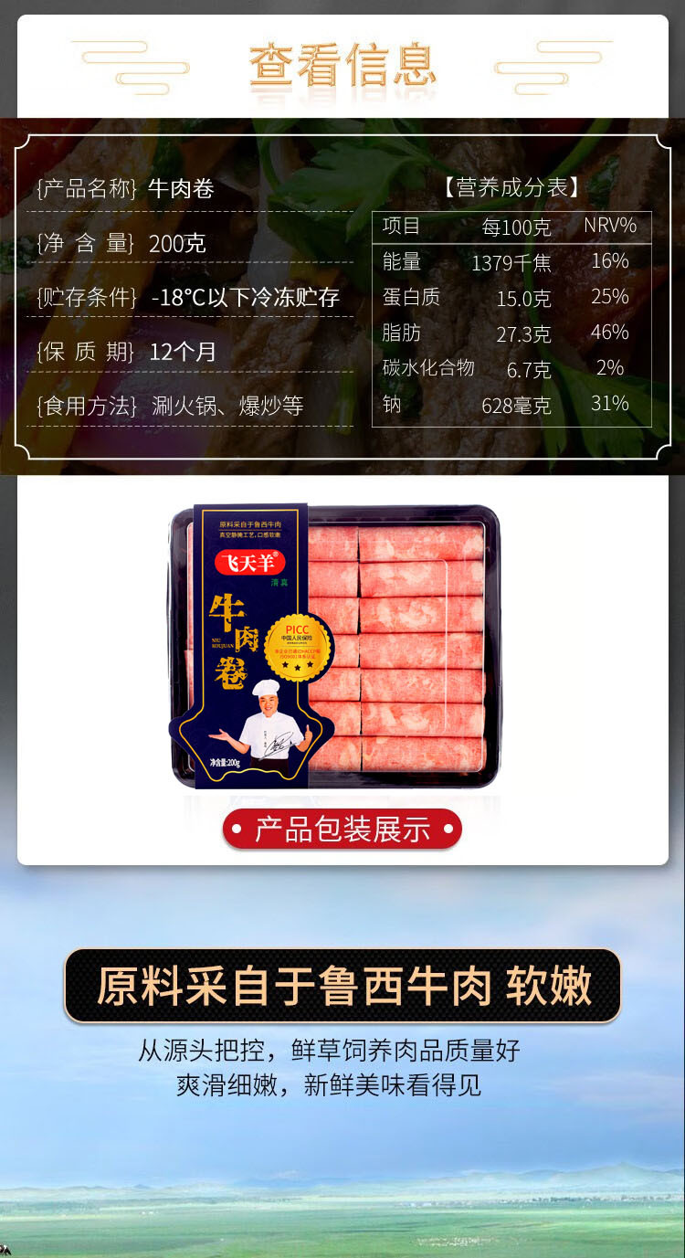 240g清真牛上脑雪花牛肉冷冻半成品新鲜原切牛肉整箱批发餐饮商用