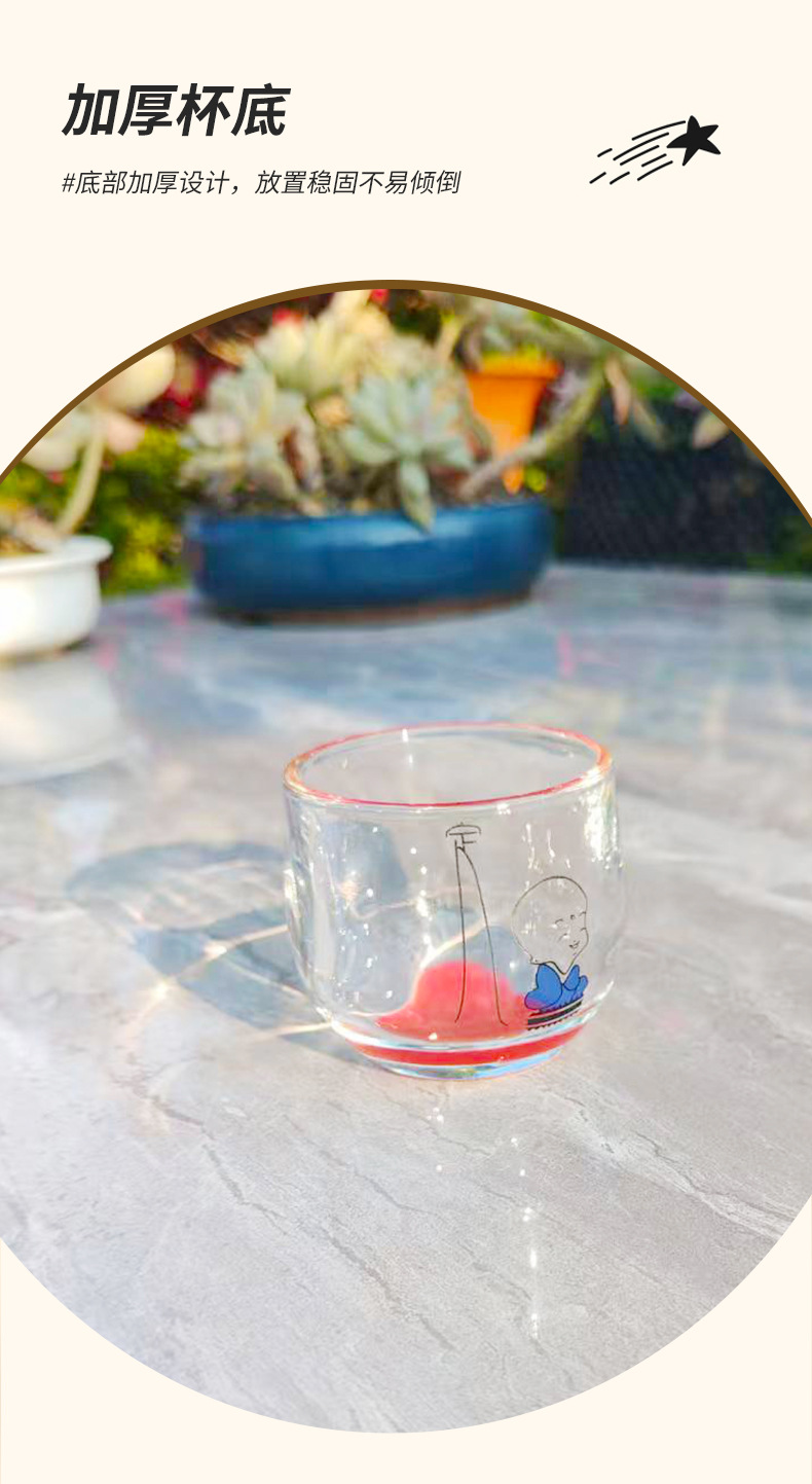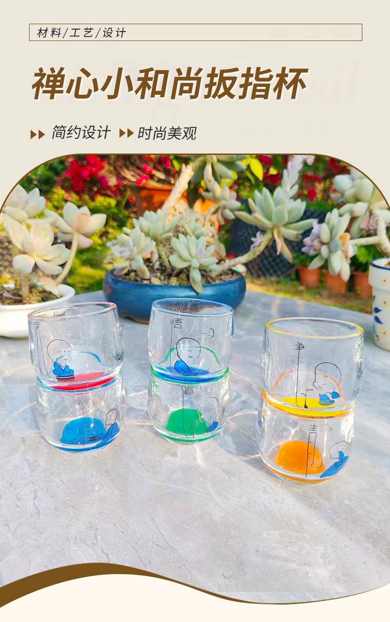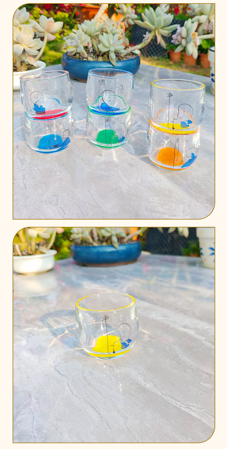 [ 商业 ] 家用玻璃水杯创意彩色底扳指杯禅心小和尚玻璃水杯耐热加厚水杯