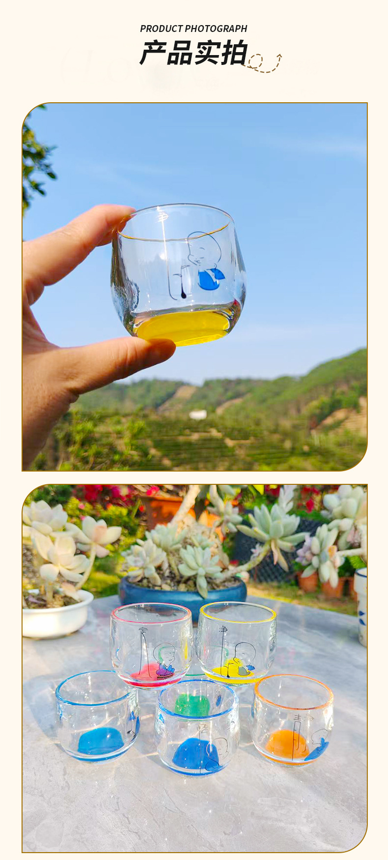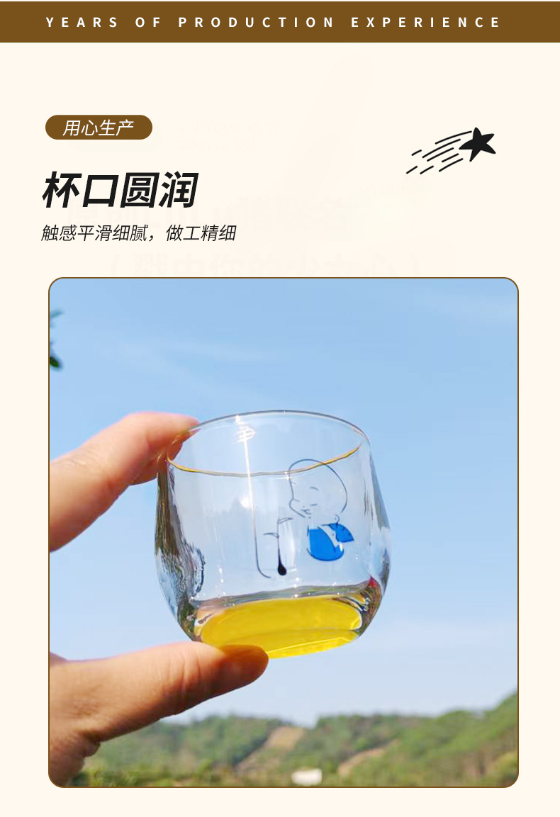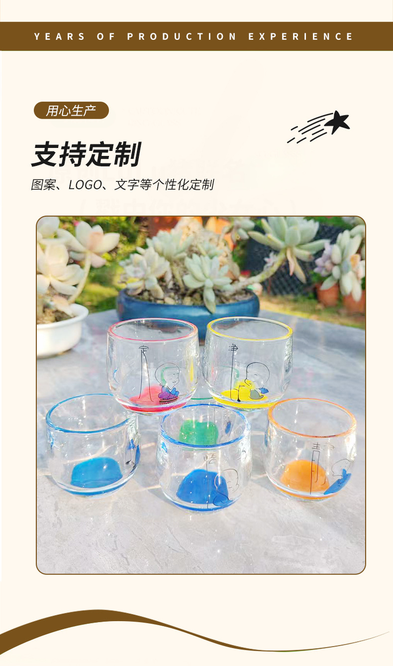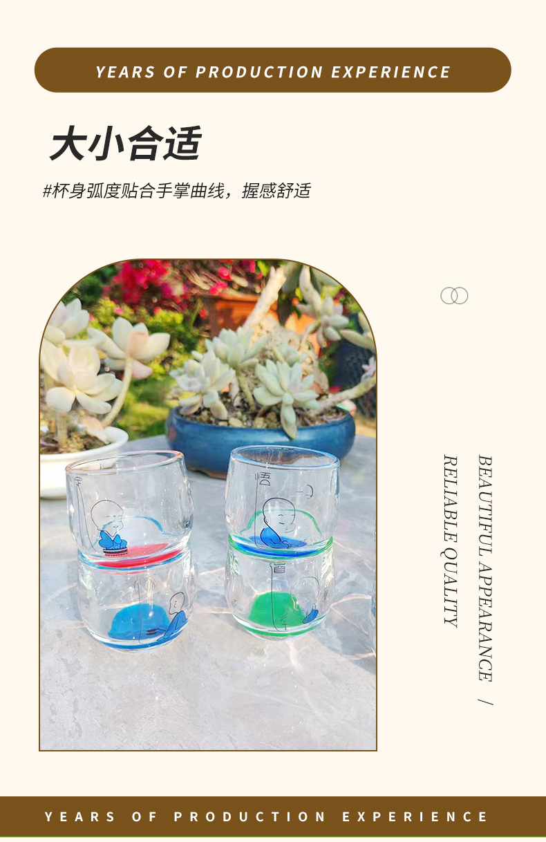 [ 商业 ] 家用玻璃水杯创意彩色底扳指杯禅心小和尚玻璃水杯耐热加厚水杯